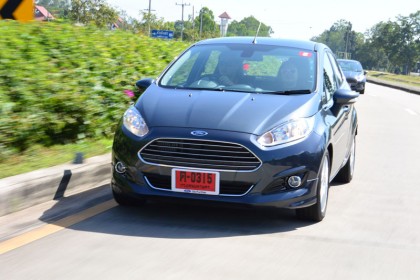 ออกจากหน้าโรงแรมแชงกรีลาใจกลางเมืองเชียงใหม่ด้วยรถ New Fiesta รุ่นสี่ประตูซีดาน รถทดสอบทั้งสิบคันซึ่งมีทั้งรุ่นสี่และห้าประตูพุ่งทะยานไปตามเส้นทางที่จะมุ่งหน้าไปยังพราวภูฟ้ารีสอร์ท สำหรับการทดสอบในช่วงแรกของภาคบ่าย มีระยะทางทดสอบเกือบๆ 100 กิโลเมตร ซึ่งเป็นทางที่จะใช้ในการทดสอบการวิ่งในเมืองก่อนจะมุ่งหน้าขึ้นไปยังเทือกเขาในแถบสะเมิงที่ขึ้นชื่อว่าอุดมไปด้วยโค้งนับร้อย ไม้แรกของการขับทดสอบเป็นหน้าที่ของอาร์ท นัฐพงษ์ เดชสิงห์ นักข่าวจากสยามธุรกิจคู่ขาเก่าของผมที่มักจะขับทดสอบด้วยกันเป็นประจำ สตาร์ตออกจากด้านหน้าโรงแรมเอาเมื่อช่วงเที่ยงวันกับสภาพการจราจรในเมืองเชียงใหม่ที่เคลื่อนตัวได้ค่อนข้างสะดวกจากปริมาณรถยนต์ร่วมทางที่มีไม่ค่อยมากนักเนื่องจากเป็นวันทำงานและอยู่ในช่วงพักเที่ยง รถ New Fiesta นอกจากจะมีเครื่องยนต์เล็กจิ๋วเพียงแค่ 1.0 ลิตร แต่มีดีเกินตัวที่สามารถรองรับเชื้อเพลิงเอทานอล E20 ได้อย่างสบายๆ มิติตัวถังที่มีส่วนท้ายยาวกว่ารุ่นห้าประตูเล็กน้อยมีไฟท้ายทรงใหม่ที่คล้ายกับของเดิม