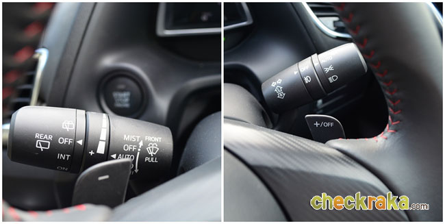สวิตช์ควบคุมระบบใบปัดน้ำฝนหน้า-หลัง พร้อมแพดเดิ้ลชิพ และก้านยกไฟเลี้ยวที่มีระบบกระพริบ 3 จังหวะมาให้