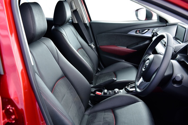ภายในห้องโดยสาร เน้นอารมณ์การขับแบบสปอร์ตพรีเมียม วัสดุโดยรวมใช้เกรดดีคล้ายรถยุโรป โดยเฉพาะการใช้วัสดุสีเงินซาตินสอดแทรกตรงคอนโซลและมือจับประตู ตัวเบาะและแผงข้างใช้หนังกลับแบบนิ่มเสริมหลายจุด ให้ความรู้สึกหรูหราขึ้นอย่างชัดเจน ด้านหลังให้พื้นที่เพียงพอสำหรับผู้ใหญ่ไซส์เอเชียทั่วไป 2 คน สอดรับกับการออกแบบให้เป็นซับคอมแพคต์ ครอสโอเวอร์ เน้นการขับด้วยความสนุกมากกว่าใช้งานบรรทุก