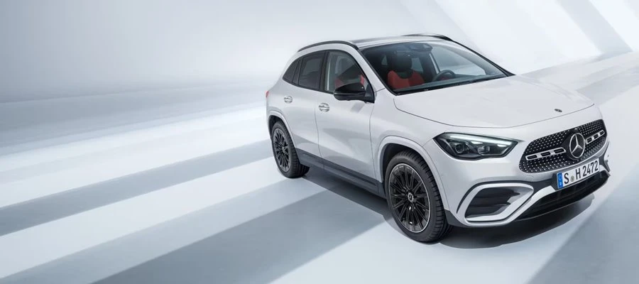 GLA นั้นสร้างความประทับใจตั้งแต่แรกเห็น ด้วยการออกแบบด้านหน้ารถยนต์กับกระจังหน้าแบบ Diamond Grille พร้อมหมุดโครเมียม และไฟหน้า LED adaptive high performance ที่สะท้อนถึงคุณลักษณะเฉพาะตัว ในขณะที่ซันรูฟพาโนรามิคแบบเลื่อนและล้ออัลลอยขนาด 19 นิ้ว มอบความสะดวกสบายในการขับขี่อันเป็นเอกลักษณ์ การออกแบบด้านหลังรถยนต์สะท้อนความสปอร์ตอย่างลงตัวด้วยปลายท่อไอเสียที่โดดเด่นและไฟท้าย LED เต็มรูปแบบ ส่วนภายในห้องโดยสารของ GLA สร้างความประทับใจด้วยการออกแบบภายในคุณภาพสูง ให้ความรู้สึกกว้างขวาง และนวัตกรรมที่มอบความสะดวกสบายในการขับขี่ ไม่ว่าจะเป็นพวงมาลัย คอนโซลกลางที่ออกแบบใหม่ ระบบมัลติมีเดีย MBUX7