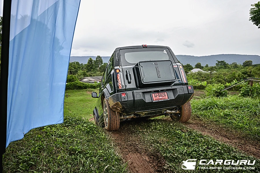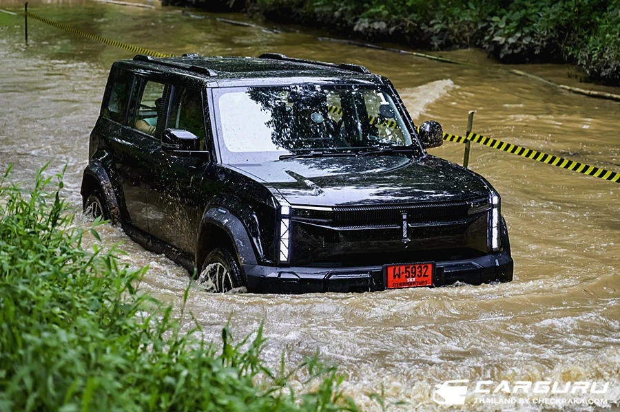 ลุยน้ำสูงเกือบ 60 ซม. เป็นเรื่องง่าย เมื่อขับผ่านบ่อน้ำจำลองของสนามแห่งนี้มีความลึกราวกว่า 50 ซม. ผ่านสบาย ๆ ครับ และที่สำคัญแบตฯ มีระบบซีลกันน้ำอย่างดี และไม่ต้องเรื่องระบบสายไฟช็อตเพราะผ่านมาตรฐานด้านความปลอดภัย และยังหมดห่วงน้ำเข้ากรอกอากาศเพราะ "ไม่มีครับ" 55555 และสุดท้ายต้องบอกว่าการขับลุยครั้งนี้ใช้ยางเดิมติดรถหรือยาง H/T ทั่วไปจากแบรนด์ GITI อีกด้วย แต่กลับขับลุยภาพผิวเส้นทางแบบนี้ได้แบบงง ๆ