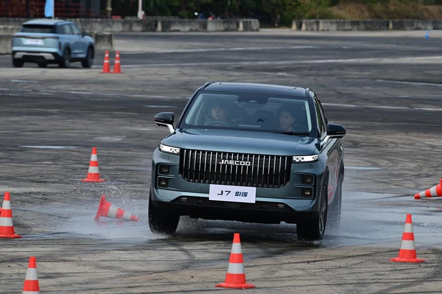 จากการที่ได้ทดลองขับ JAECOO 7 SHS ในระยะทาง 3 รอบ ได้ทดลองโหมดการขับขี่ทั้ง Eco, normal และ Sport ผ่านสถานีทดสอบต่าง ๆ ทั้งที่เป็นออนโรดและออฟโรดเพื่อดูสมรรถนะของรถคันนี้พบว่า แรงบิดที่ได้จากจากกำลังมอเตอร์ผสมผสานกับเครื่องยนต์เทอร์โบ 1.5 ลิตร ให้การออกตัวฉับไวรวดเร็ว ล้อมีอาการหมุนฟรีให้ได้ยิน ในสถานีสลาลอมรู้สึกได้ว่าตัวถังมีอาการยกตัวเล็กน้อยให้รู้สึกรู้สึกได้อยู่ ส่วนสถานีเลนเชนจ์ก็ทำได้คล่องตัว การลดระดับความเร็ว ชะลอเบาเบรกนับได้ว่าเป็นฟีลลิ่งที่ตอบสนองกลับได้ง่ายและจับได้ดีกว่ารถญี่ปุ่นในคลาสเดียวกันบางรุ่น