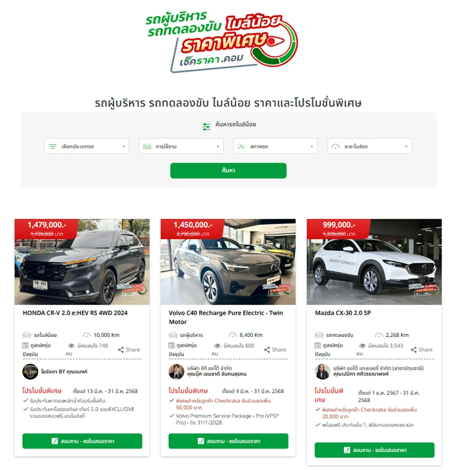 "รถผู้บริหาร/ทดลองขับ/ไมล์น้อย" โดยจะมีข้อเสนอดี ๆ จำนวนจำกัด อย่ารอช้า!