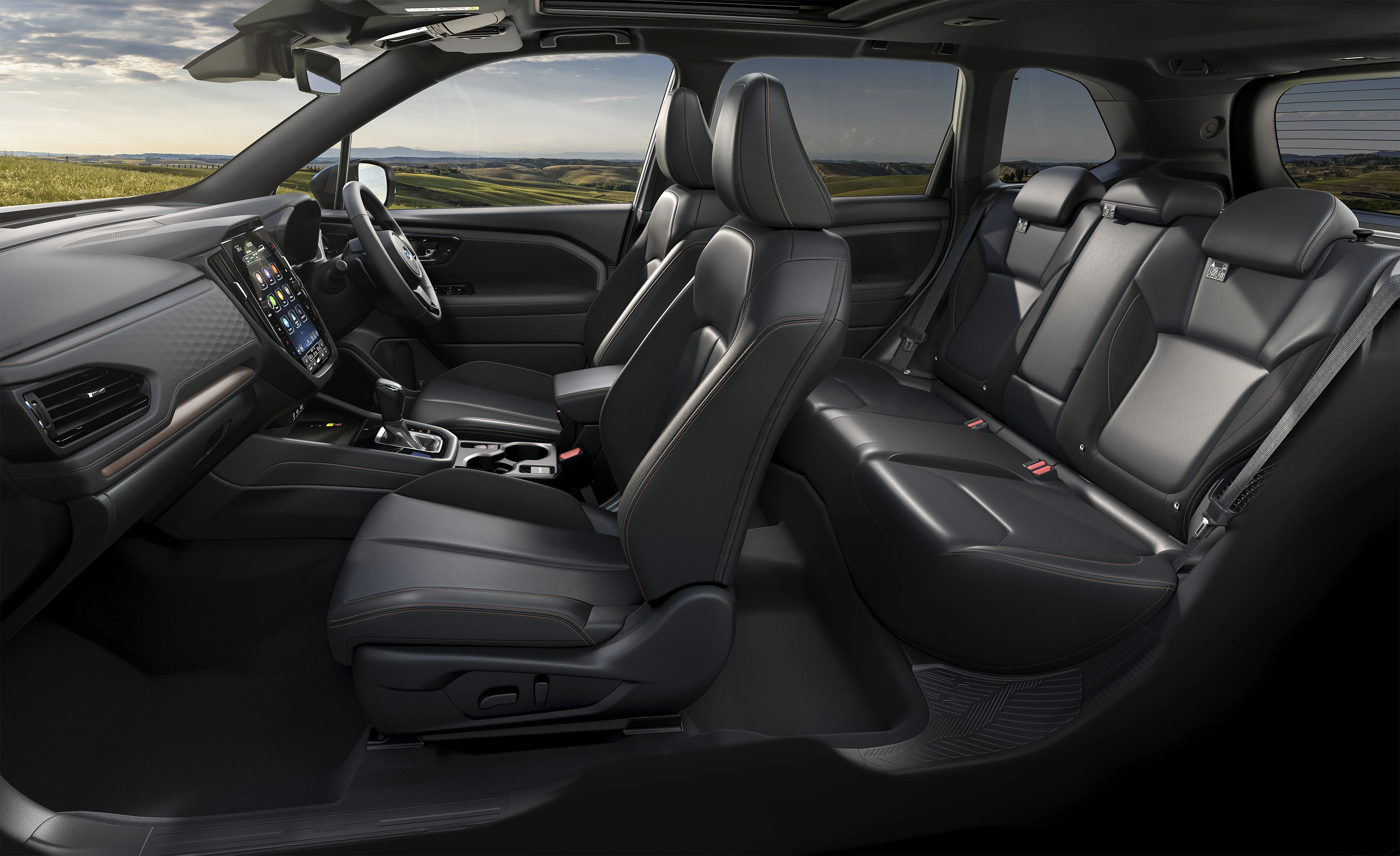 - การออกแบบตามหลักสรีรศาสตร์ (Ergonomic Design): เบาะนั่งเจเนอเรชันใหม่ที่พัฒนาโดยความร่วมมือระหว่าง Subaru และศูนย์การแพทย์ในญี่ปุ่น ถูกออกแบบตามหลักสรีรศาสตร์ให้ลดความเมื่อยล้าในการเดินทางทุกระยะ รางเบาะติดตั้งโดยตรงกับโครงสร้างตัวถังเพื่อเพิ่มความแข็งแรง ลดแรงสั่นสะเทือน ลดความตึงเครียด และรองรับสรีระได้ดียิ่งขึ้น ผู้ขับยังได้สัมผัสกับเบาะปรับไฟฟ้า 10 ทิศทาง พร้อมระบบดันหลัง (Lumbar Support) ที่ให้ความสะดวกสบายสูงสุด โดยเฉพาะการเดินทางไกล มอบความเพลิดเพลินในการขับขี่ที่ทัดเทียม หรือเหนือกว่ารถยนต์ยุโรปบางรุ่น