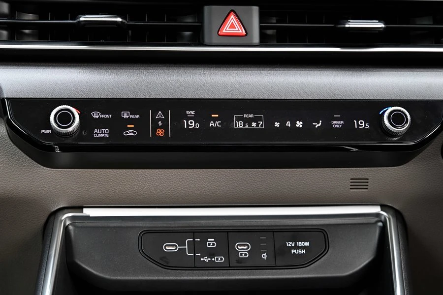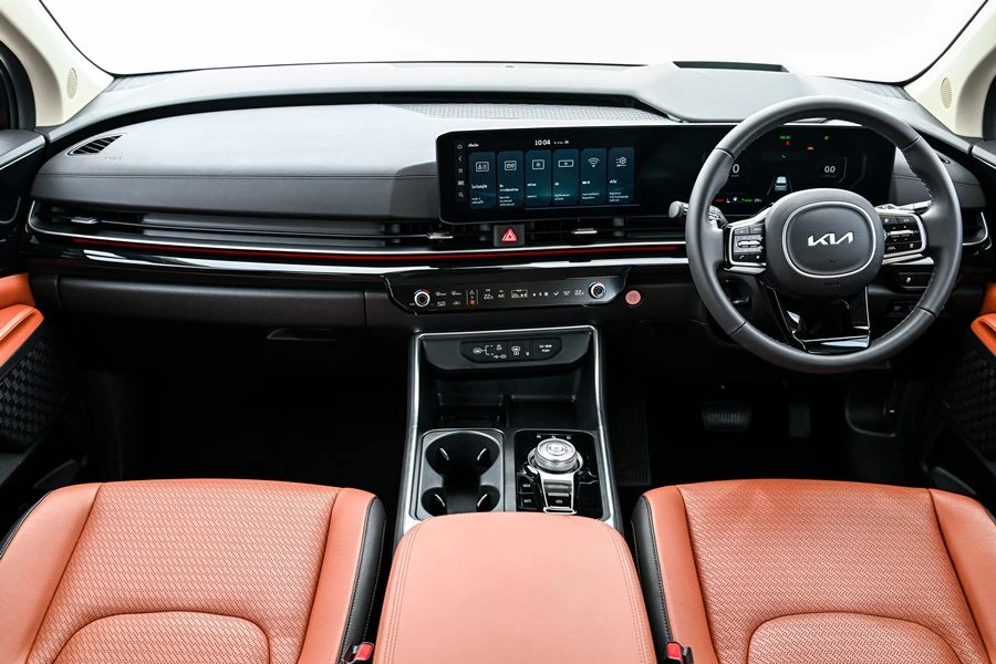 ห้องโดยสารของ The new Kia Carnival HEV 7-seater ได้รับการออกแบบให้กว้างขวางและร่วมสมัยด้วยดีไซน์ใหม่ ประกอบด้วยจอโค้งแบบพาโนรามิกที่ผสานรวมจอแสดงผลแบบคลัสเตอร์ขนาด 12.3 นิ้ว หน้าจออินโฟเทนเมนท์แบบสัมผัสขนาด 12.3 นิ้ว เข้าไว้ด้วยกันแบบไร้รอยต่อ มีระบบเชื่อมต่อ Android Auto™ และ Apple CarPlay® แบบไร้สายและฟังก์ชันสั่งงานด้วยเสียง มีระบบปรับอากาศด้านหน้าแบบอัตโนมัติที่สามารถปรับอุณหภูมิได้แบบแยกอิสระทั้งโซนด้านหน้าฝั่งซ้าย-ขวา และโซนด้านหลัง นอกจากนี้ยังมีสวิตช์สำหรับสลับการควบคุมระบบอินโฟเทนเมนต์และระบบปรับอากาศที่ผสานการควบคุมทั้งระบบไว้บนอินเตอร์เฟซเดียวกัน เพียงแค่สัมผัสหนึ่งครั้งก็สามารถสลับการควบคุมไปมาระหว่างระบบอินโฟเทนเมนต์กับระบบปรับอากาศ ช่วยลดความซับซ้อนของเลย์เอาต์ในขณะที่ยังคงความสะดวกในการใช้งาน