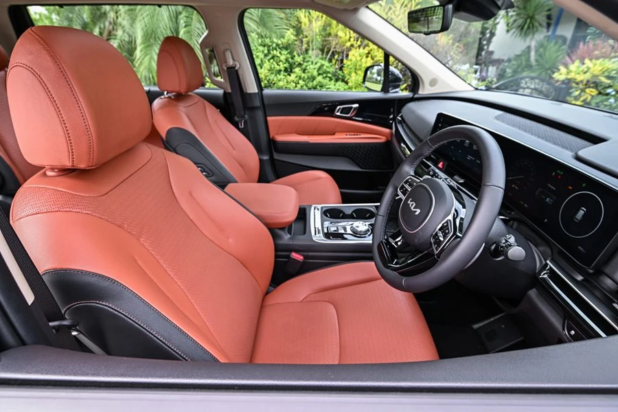 สำหรับเบาะที่นั่งของคนขับในรุ่น The new Kia Carnival HEV 7-seat Luxury ยังได้ติดตั้งระบบจดจำตำแหน่งเบาะนั่งและระบบ Welcome Seat สำหรับผู้ขับ เบาะนั่งคู่หน้าและเบาะนั่งแถวที่สองมาพร้อมระบบระบายอากาศและระบบอุ่นเบาะ สำหรับเบาะผู้โดยสารแถวสองเป็นแบบ Relaxation Seat ที่เปลี่ยนทุกการเดินทางให้เป็นความสะดวกสบายระดับเฟิร์สคลาสด้วยฟังก์ชันปรับเอนนอนที่สามารถปรับระดับได้เต็มรูปแบบ พร้อมเบาะรองขาแบบปรับไฟฟ้า มีโหมด One-touch Relaxation ที่สั่งงานด้วยการกดเพียงครั้งเดียวมอบความสบายให้กับผู้นั่งได้อย่างง่ายดาย