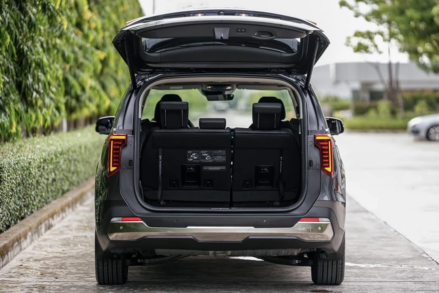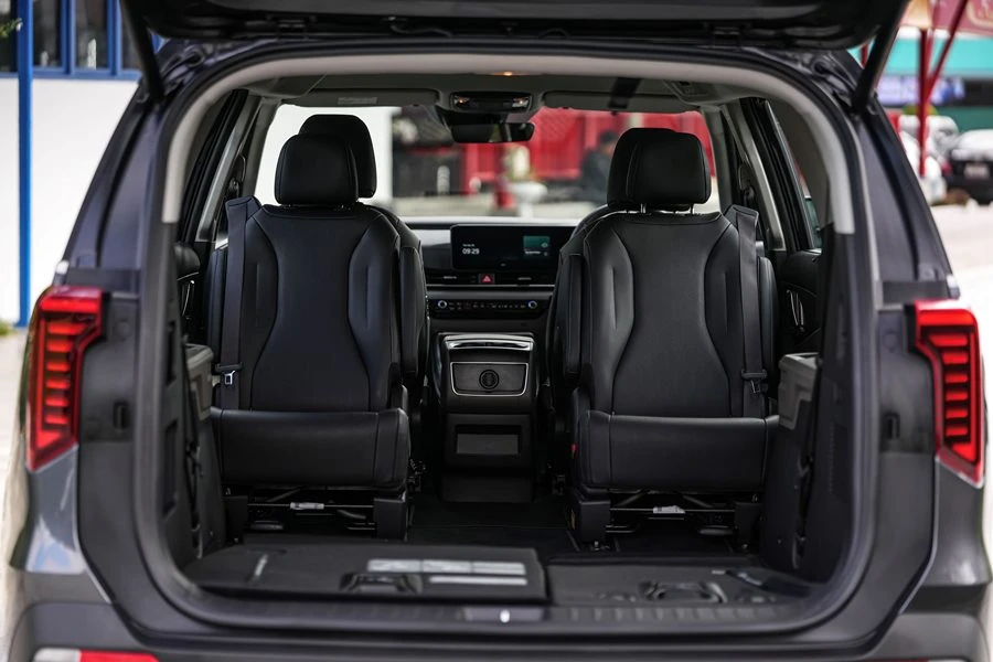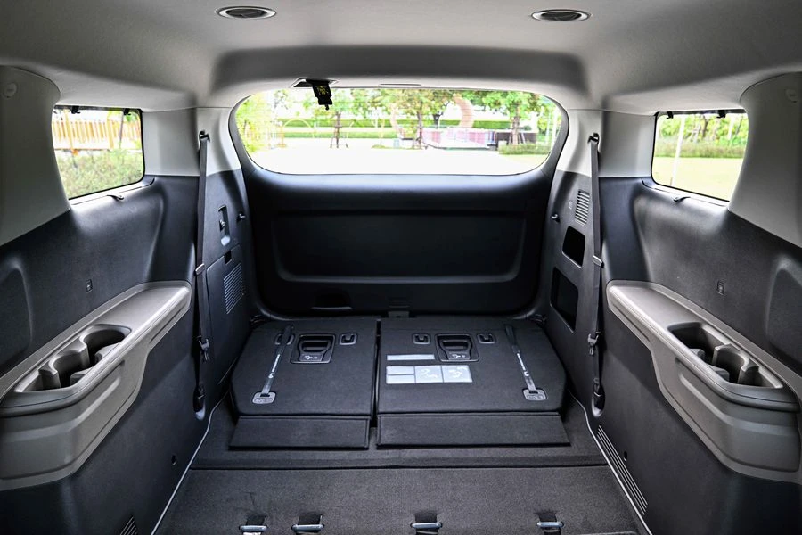 The new Kia Carnival HEV 7-seater ยังคงโดดเด่นในเรื่องความกว้างขวางสำหรับทั้งผู้โดยสารและสัมภาระ รวมถึงการปรับเปลี่ยนรูปแบบการจัดเรียงที่นั่งผู้โดยสารที่มีความยืดหยุ่น โดยถือเป็นรถ MPV ที่รองรับผู้โดยสารได้สูงสุด 7 ที่นั่ง พร้อมด้วยสัมภาระของทุกคนได้อย่างสะดวกสบายด้วยรถคันเดียว เบาะนั่งแถวสามมาพร้อมฟังก์ชันพับราบ ที่เป็นการสร้างพื้นที่บรรทุกแบบเรียบที่รวดเร็วและไม่ต้องใช้แรง ปรับเปลี่ยนได้ทันทีระหว่างความต้องการในการขนย้ายคนและขนส่งสินค้า