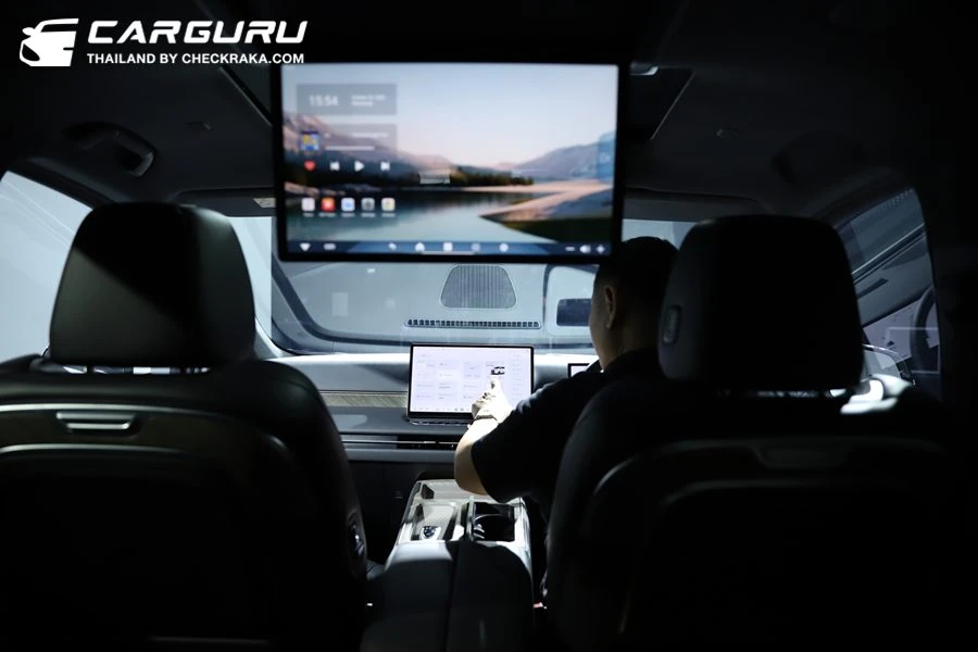- ด้านหลังยังมีจอความบันเทิงสำหรับผู้โดยสารแถวสอง ขนาด 17.3 นิ้ว ดูหนัง ซีรีส์ หรือเชื่อมต่อความบันเทิงต่าง ๆ ได้สะใจ
