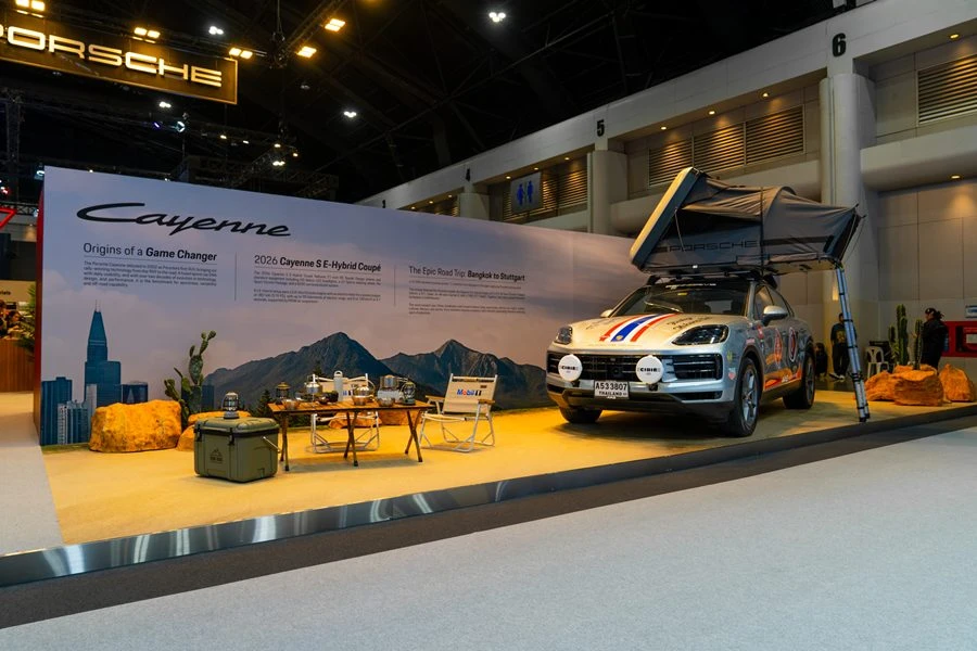 คาเยนน์ เอส อี ไฮบริด คูเป้ จากการเดินทาง Epic Road Trip กรุงเทพฯ สู่สตุ๊ทการ์ท พร้อมจัดแสดงให้ได้สัมผัสครั้งแรกในงาน Thailand International Motor Expo 2025 หลังพิชิตระยะทางกว่า 22,000 กิโลเมตร ผ่าน 17 ประเทศ ภายใน 61 วัน ซึ่งแสดงศักยภาพที่แข็งแกร่ง สะดวกสบายและประสิทธิภาพอย่างเต็มสมรรถนะ สะท้อนความยอดเยี่ยมของวิศวกรรมปอร์เช่และความสามารถของรุ่นประกอบในภูมิภาคที่ยึดมั่นคุณภาพและสมรรถนะที่ไม่ลดทอน
