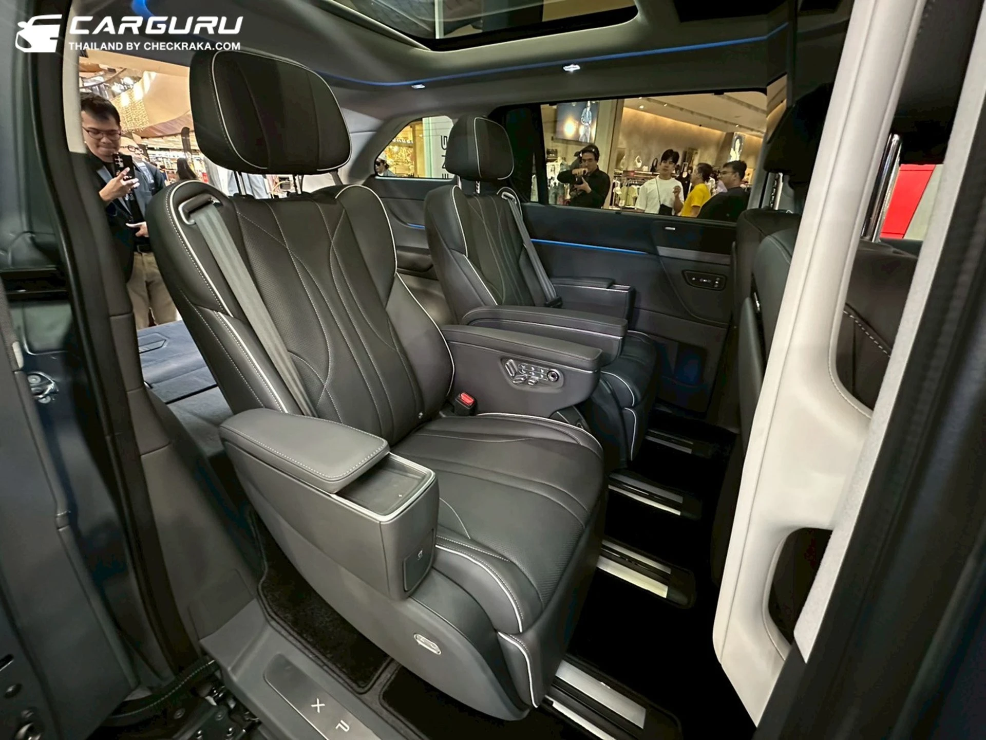 รถตู้ไฟฟ้าทรงสปอร์ตอัจฉริยะ ที่มาพร้อมเฉดสีภายใน Moon Shadow Coffee และ Meteorite Black นั่งสบายด้วยเบาะแถวที่สองแบบโซฟา พร้อมฟังก์ชั่น Zero-Gravity ปรับไฟฟ้าได้ 14 ทิศทาง และช่องทางเดินระหว่างเบาะแถวที่สอง