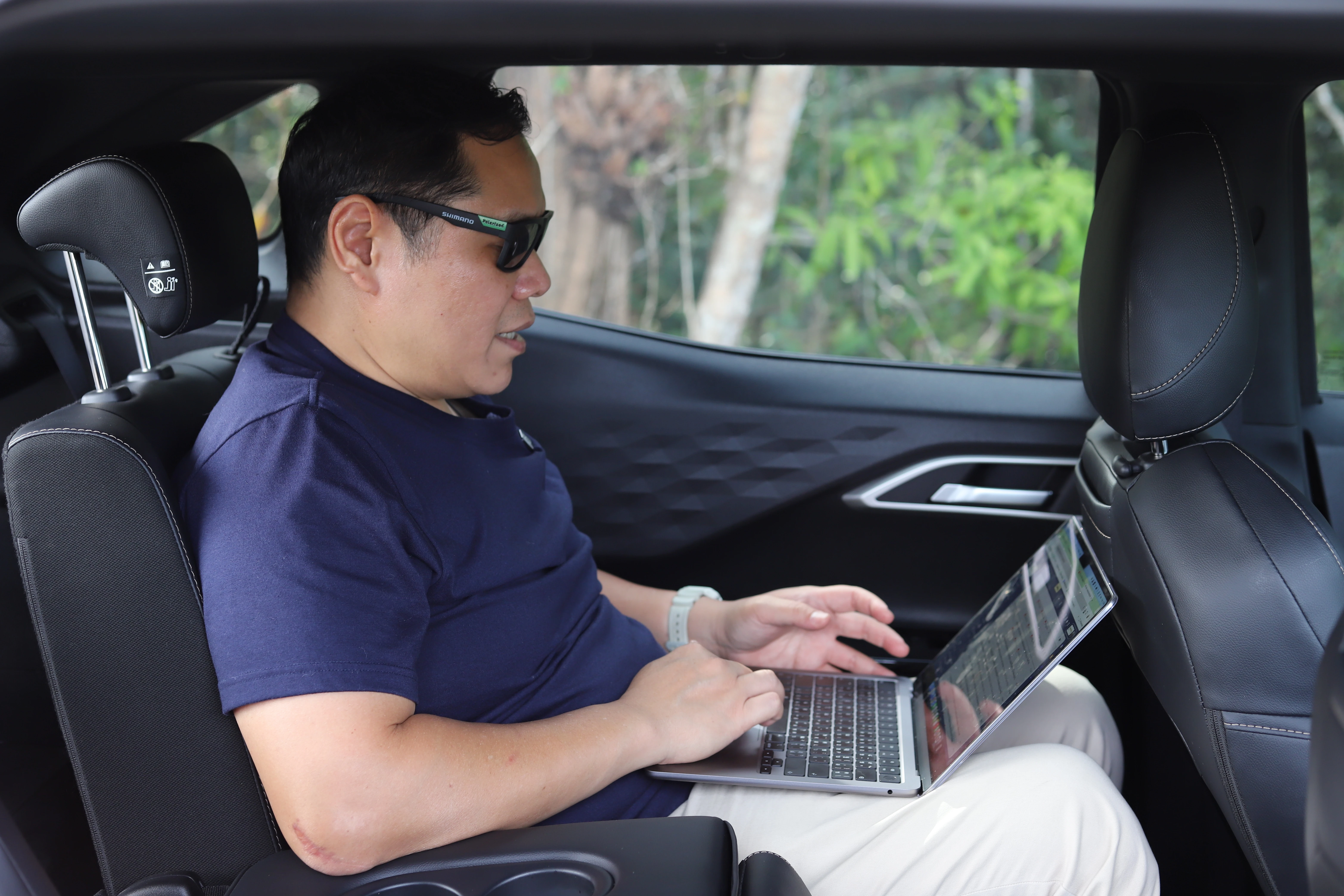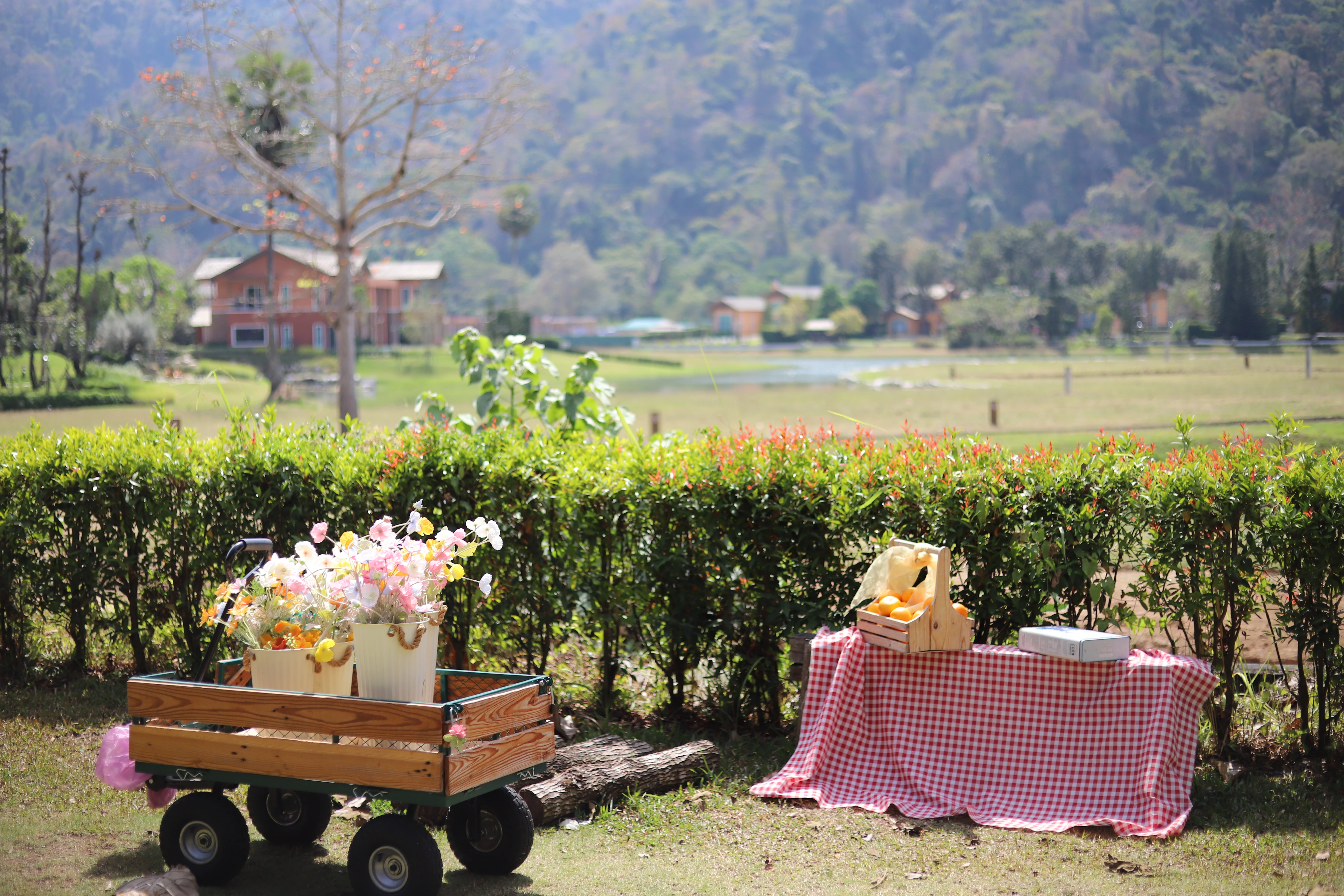 บริเวณโดยรอบสระน้ำเป็นธรรมชาติ มีทุ่มหญ้ากว้างให้ได้พักและจอดรถทำกิจกรรมต่าง ๆ สไตล์ “แคมป์ปิ้ง” หรือจะเปิดท้ายนั่งเล่นกีต้าร์ชมวิวสวย ๆ ไปด้วย นั่งทานอาหารได้แบบสบาย ยิ่งใน Xforce HEV คันนี้มีพื้นที่ภายในกว้างขวางโปร่งโล่งสบาย จะนั่งพัก หรือแวะส่งเมลเร่งด่วน สามารถทำได้ในรถแบบไม่อึดอัด หากระดับแบตฯ ไฮบริดในรถมีมากพอยังสามารถกดโหมด “EV” เพื่อจอดรถและเปิดระบบปรับอากาศได้อย่างสบายเลย