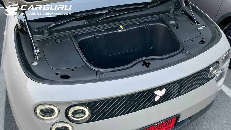 อีกจุดที่น่าสนใจคือ พื้นที่เก็บของด้านหน้า (Frunk) ซึ่งมีขนาดค่อนข้างใหญ่ สามารถใช้เก็บของได้สะดวก และยังมีไฟส่องสว่างสำหรับการใช้งานตอนกลางคืน ถือเป็นรายละเอียดเล็ก ๆ ที่สะท้อนถึงความใส่ใจในการออกแบบ