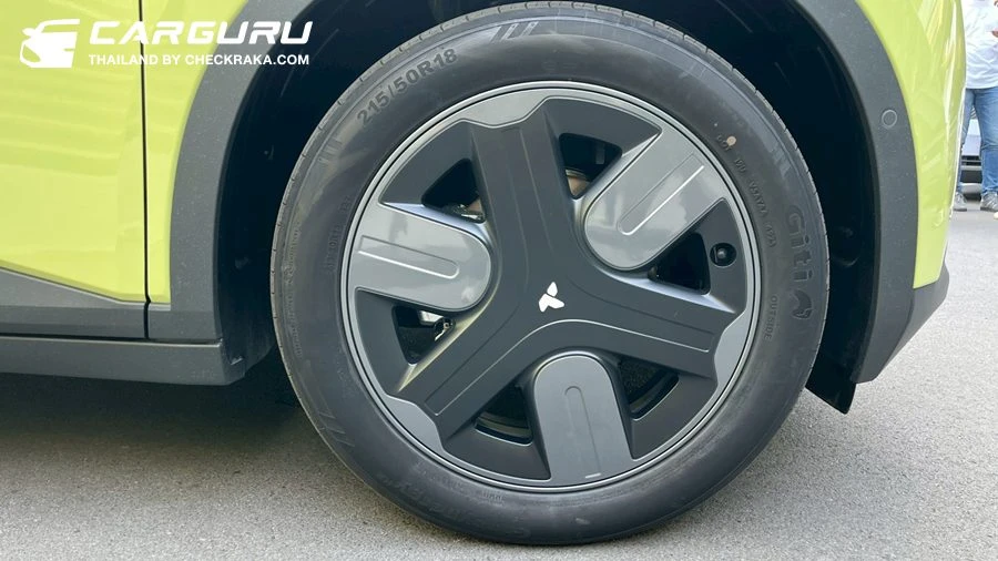 ล้อที่ติดตั้งมาเป็นขนาด 215/50 R18 ซึ่งถือว่าเป็นไซซ์เดียวกับรถไฟฟ้ารุ่นยอดนิยมอย่าง ORA Good Cat ทำให้ช่วยเสริมภาพลักษณ์ให้รถดูสปอร์ตขึ้น