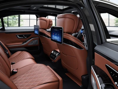 Mercedes-Benz S 350 d AMG Premium หรูหราทันสมัยด้วยคอนเซ็ปต์ Sensual Purity ไฟหน้า MULTIBEAM LED ระยะฐานล้อที่ยาวขึ้นกว่ารุ่นเดิมมากถึง 51 มม. เส้นโค้งหลังคา Catwalk line และล้ออัลลอย AMG 20 นิ้ว การล็อกและปลดล็อกประตูเพียงใช้มือสัมผัสที่มือจับประตู พวงมาลัยมัลติฟังก์ชันแบบสปอร์ต "D shape" หุ้มด้วยหนัง Nappa leather และหน้าจอแสดงข้อมูลการขับขี่ Digital Instrument clusters 12.3 นิ้ว และ MBUX7 แบบทัชสกรีน 12.8 นิ้วแบบ OLED เบาะที่นั่งตอนหลังยังมาพร้อม Rear Seat Comfort Package