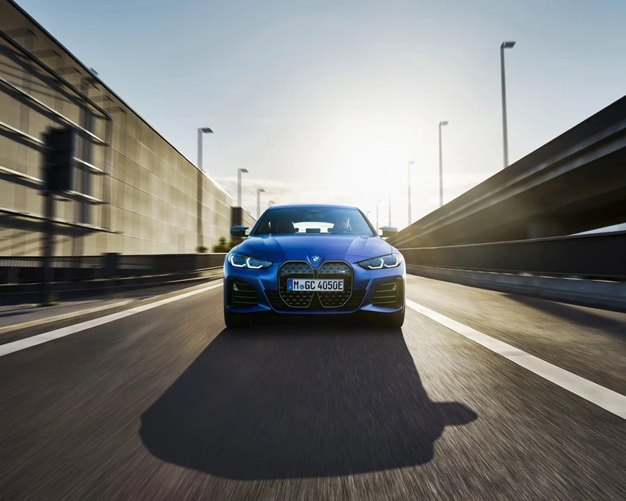 BMW i4 รถสปอร์ตสายพันธุ์ M Performance ที่แอบแตกแถวไปคบกับพลังมอเตอร์ไฟฟ้า 2 ชุดหน้าและหลัง พละกำลังรวม 536 แรงม้า (544 PS) และแรงบิด 586 ปอนด์-ฟุต หรือ 729.43 นิวตันเมตร มีมอเตอร์ไฟฟ้า 2 ตัว มอเตอร์หน้า 255 แรงม้า และมอเตอร์ด้านหลัง 308 แรงม้า พร้อมตัวรถที่ตกแต่งด้วยสีน้ำเงิน Frozen Portimao Blue สลับกับสีดำสนิทและคาร์บอนไฟเบอร์