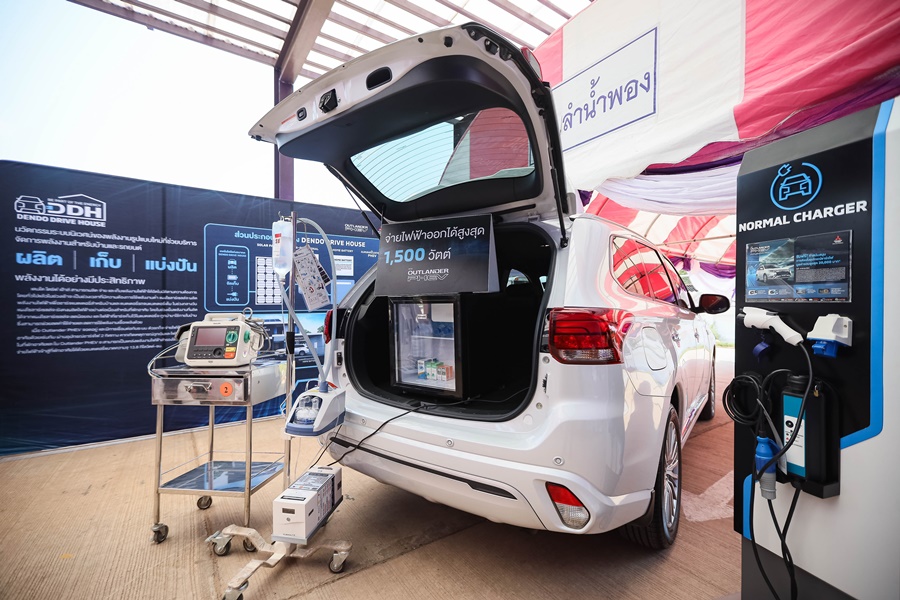 นอกจากการมอบระบบไฟฟ้าจากโซล่าร์เซลล์แล้ว มิตซูบิชิ มอเตอร์ส ประเทศไทย ยังจัดส่งรถยนต์ไฟฟ้ารุ่นเรือธง มิตซูบิชิ เอาท์แลนเดอร์ พีเอชอีวี จำนวน 1 คัน ให้แก่โรงพยาบาลน้ำพองได้นำไปใช้สำหรับกิจกรรมทางการแพทย์ รถยนต์ไฟฟ้าที่เป็นมิตรกับสิ่งแวดล้อมรุ่นนี้ สามารถจ่ายกำลังไฟได้สูงสุด 1,500 วัตต์ ให้แก่อุปกรณ์ไฟฟ้าเพื่อใช้ในกิจกรรมนอกบ้าน