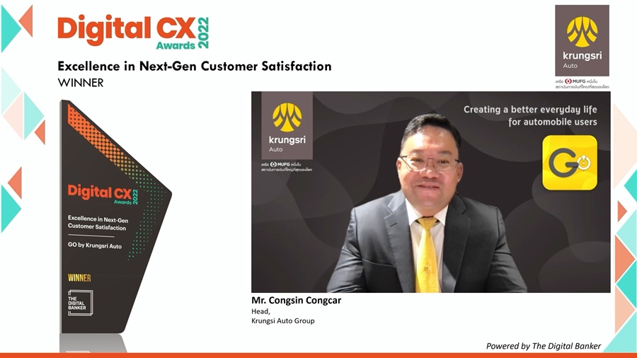 รางวัลชนะเลิศในสาขา Excellence in Next-Gen Customer Satisfaction สะท้อนถึงความสำเร็จในการเป็นแบรนด์ที่สร้างประสบการณ์ดิจิทัลเพื่อคนยุคใหม่ของกรุงศรี ออโต้ ด้วยการยอมรับจากรางวัลที่มีชื่อเสียง Digital CX Awards จัดโดย The Digital Banker เว็บไซต์ด้านการเงินการธนาคารระดับโลก ซึ่งมีวัตถุประสงค์เพื่อสนับสนุนและนำเสนอนวัตกรรมและเทคโนโลยีในธุรกิจการเงินที่สร้างประการณ์ที่ยอดเยี่ยมให้กับผู้บริโภค
