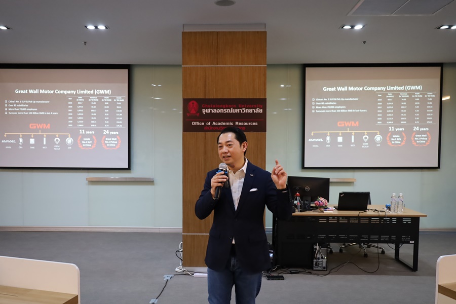 เกรท วอลล์ มอเตอร์ ร่วมแสดงวิสัยทัศน์การเป็นหนึ่งในองค์กรชั้นนำ ฝ่ากระแสความท้าทายยุค Disruption เข้าร่วมบรรยายใต้โครงการพัฒนาเสริมสร้างศักยภาพด้านการบริหารจัดการ หลักสูตร The Prospect : New World of Higher Education สำหรับผู้บริหารมหาวิทยาลัยสายวิชาการ (หัวหน้าภาค) จุฬาลงกรณ์มหาวิทยาลัย ภายใต้หัวข้อ Leadership in Disruptive Era ซึ่งจัดขึ้นโดย คณะพาณิชยศาสตร์และการบัญชี เพื่อร่วมถ่ายทอดประสบการณ์เพื่อนำไปพัฒนา ต่อยอดองค์ความรู้ และส่งมอบให้กับนิสิตผู้เปรียบเสมือนฟันเฟืองสำคัญในการพัฒนาประเทศชาติ ตอกย้ำความมุ่งมั่นในการก้าวขึ้นเป็นผู้นำด้านยานยนต์ไฟฟ้า (xEV Leader) ของประเทศไทย
