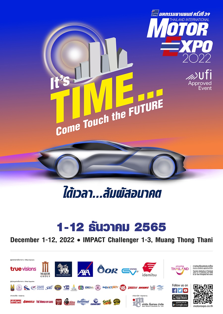ขวัญชัย ปภัสร์พงษ์ ประธาน บริษัท สื่อสากล จำกัด และประธานจัดงาน มหกรรมยานยนต์ ครั้งที่ 39 (MOTOR EXPO 2022) เปิดเผยว่า งานปีนี้จัดขึ้นภายใต้แนวคิด ได้เวลา…สัมผัสอนาคต - It’s TIME…Come Touch the Future เพื่อแสดงความล้ำหน้าของยานยนต์ ทั้งด้านรูปลักษณ์ สมรรถนะ และเทคโนโลยี โดยมี บริษัทรถยนต์ รถจักรยานยนต์ และอุปกรณ์เกี่ยวเนื่อง จำนวนมากให้ความสนใจจองพื้นที่แสดง และคาดว่าจะเป็นงานใหญ่ปลายปีที่ได้รับการต้อนรับจากประชาชนอย่างคึกคัก เนื่องจากสถานการณ์โรคระบาด COVID-19 ดีขึ้นตามลำดับ ภาครัฐผ่อนคลายมาตรการด้านสาธารณสุข ออกนโยบายกระตุ้นเศรษฐกิจ เปิดประเทศต้อนรับนักท่องเที่ยว อีกทั้งยังมีมาตรการสนับสนุนยานยนต์ไฟฟ้า ส่งเสริมการใช้ และการผลิตภายในประเทศ