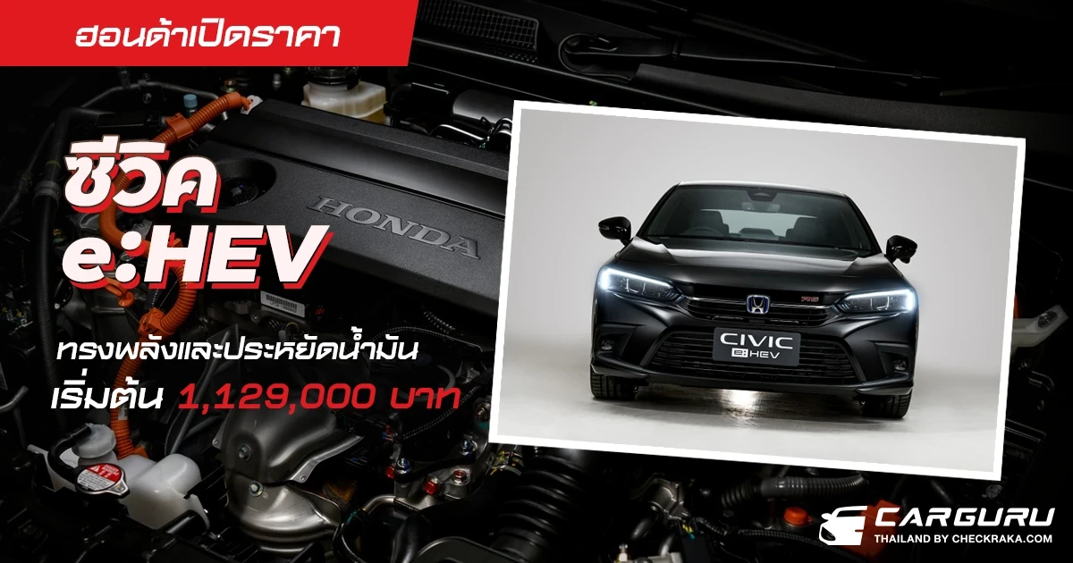 บริษัท ฮอนด้า ออโตโมบิล (ประเทศไทย) จำกัด ประกาศราคาพร้อมจำหน่าย ฮอนด้า ซีวิค อี:เอชอีวี ใหม่ อย่างเป็นทางการ รุ่น e:HEV RS ราคา 1,259,000 บาท และรุ่น e:HEV EL+ ราคา 1,129,000 บาท ด้วยเทคโนโลยีการขับเคลื่อนขุมพลังฟูลไฮบริด e:HEV ที่ผสานการทำงานอันทรงพลังร่วมกันของมอเตอร์ไฟฟ้า 2 ตัว กับเครื่องยนต์ใหม่ ขนาด 2.0 ลิตร Direct Injection Atkinson-Cycle DOHC แรงบิดมอเตอร์สูงสุด 315 นิวตัน-เมตร ให้อัตราประหยัดน้ำมันระดับ 25 กิโลเมตร/ลิตร และเทคโนโลยีความปลอดภัยอัจฉริยะ ฮอนด้า เซนส์ซิ่ง (Honda SENSING) มาพร้อมดีไซน์สปอร์ต โฉบเฉี่ยว และหรูหรามากยิ่งขึ้นทั้งภายนอกและภายใน ห้องโดยสารกว้างขวางสะดวกสบาย ตอบโจทย์การใช้งานหลากหลายด้วยเบาะนั่งด้านหลังแยกพับแบบ 60:40 เพิ่มพื้นที่ใช้สอยอเนกประสงค์ พร้อมช่องปรับอากาศสำหรับผู้โดยสารตอนหลัง สะดวกสบายเหนือกว่ากับระบบควบคุมประตูแบบอัจฉริยะพร้อม Honda Smart Key Card ครบครันด้วยเทคโนโลยีเพื่อความสะดวกสบาย และเทคโนโลยีความปลอดภัยอันล้ำสมัย