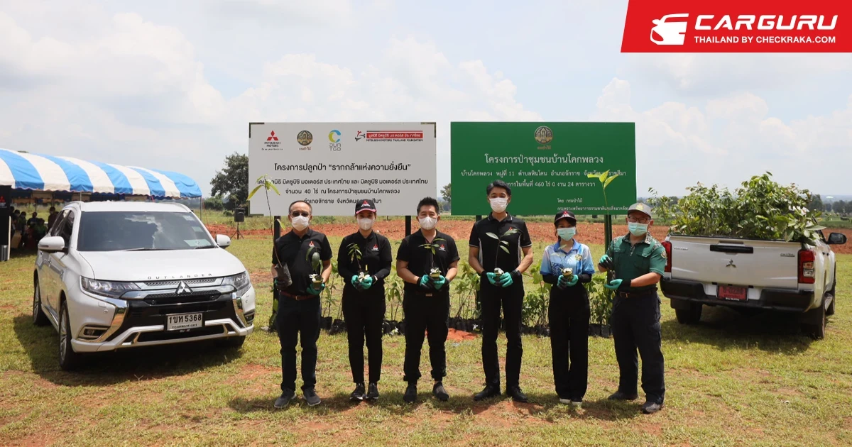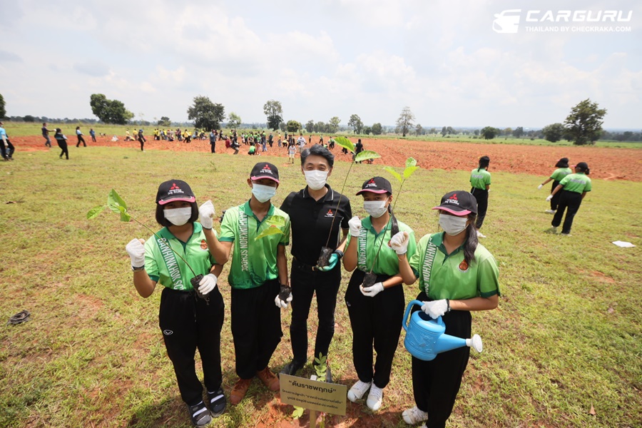 มร. เออิอิชิ โคอิโตะ (ที่ 3 จากขวา) กรรมการผู้จัดการใหญ่ บริษัท มิตซูบิชิ มอเตอร์ส (ประเทศไทย) จำกัด และประธานมูลนิธิ มิตซูบิชิ มอเตอร์ส ประเทศไทย, นายเอกอธิ รัตนอารี (ซ้ายสุด) กรรมการรองผู้จัดการใหญ่ สายงานทรัพยากรบุคคลและบริหารทั่วไป บริษัท มิตซูบิชิ มอเตอร์ส (ประเทศไทย) จำกัด และรองประธานมูลนิธิ พร้อมกับ นายสมถวิล ลีลมโนธรรม (ขวาสุด) นักวิชาการป่าไม้ชำนาญการ กรมป่าไม้ ถ่ายภาพกลุ่มระหว่างเข้าร่วมกิจกรรมปลูกป่า Root for Sustainability : รากกล้าแห่งความยั่งยืน ณ ป่าชุมชนบ้านโคกพลวง อำเภอจักราช จังหวัดนครราชสีมา เพื่อสร้างระบบนิเวศที่ยั่งยืน และส่งเสริมการอยู่ร่วมกันระหว่างคนกับป่า