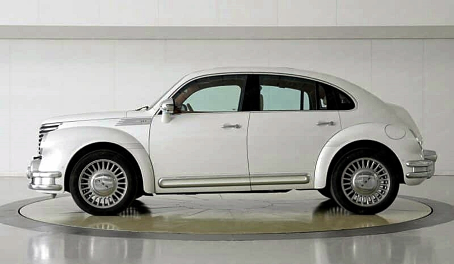 ส่วนของหลังคาเป็นพาโนรามิคแต่ยังไม่ใหญ่เต็มหลังคาเท่าไหร่ กระจกมองข้างแบบแยกจากหูช้างนึกถึงรถรุ่นสมัยก่อน ส่วนท้ายรถนั้นยิ่งดูคล้ายรถยนต์ยุคโบราณ โดยเฉพาะส่วนฝากระโปรงท้ายที่ตีโป่งออมาเหมือนว่าเก็บยางอะไหล่ แบบรถสมัยเก่า ๆ ส่วนกันชนแบบโครเมี่ยมยื่นออกมาเหมือนโฟล์คเต่า ปิดท้ายด้วยล้ออัลลอยพร้อมฝาครอบโครเมี่ยมเงาวับ