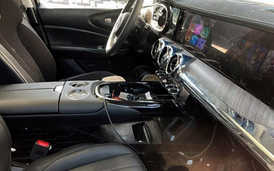 ภายในอกแบบกึ่งคลาสิกกึ่งอนาคตด้วยตัวเบาะหนังสลับสี พวงมาลัยทรงรถโบราณ แต่หน้าจอแสดงผลแบบสัมผัสขนาดใหญ่ตรงกลางและมาตรวัดฝั่งคนขับทรงกลมแต่ยังไม่เผยถึงรายละเอียดว่ามีฟังก์ชั่นอะไรบ้าง