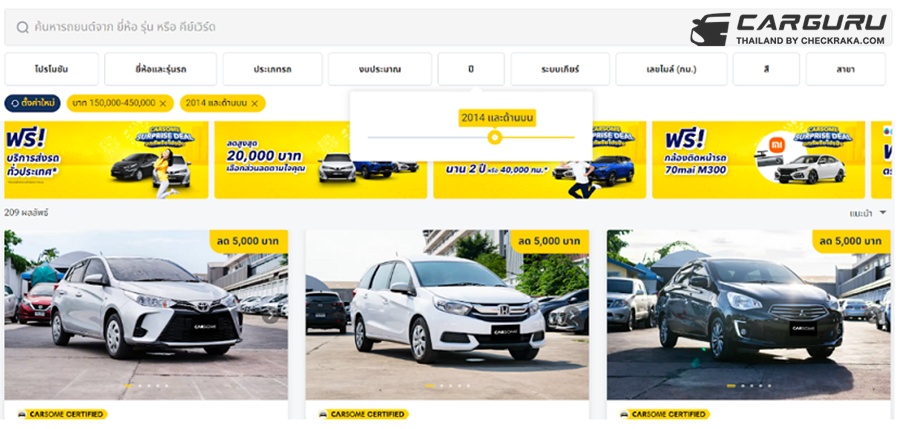 การกำหนดอายุรถยนต์มือสองเป็นข้อสำคัญที่ต้องทำพอ ๆ กับการกำหนดงบประมาณในการซื้อรถยนต์ โดยบนเว็บไซต์ www.carsome.co.th คุณสามารถกำหนดปีเพื่อกรองดูรถที่อยู่ในช่วงอายุที่คุณรับได้ อย่างไรก็ตาม จำเป็นต้องทราบว่าอายุการใช้งานรถยนต์เป็นปัจจัยสำคัญที่ส่งผลต่อราคาเช่นเดียวกัน