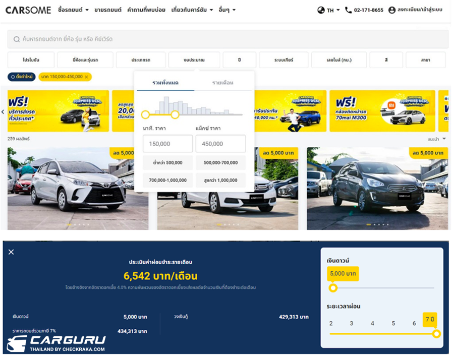 CARSOME พร้อมมอบประสบการณ์ซื้อและขายรถยนต์มือสองที่ราบรื่นและสะดวกสบายทั้งช่องทางออนไลน์และบริการหน้าร้าน สำหรับข้อมูลเพิ่มเติม กรุณาเข้าชมที่เว็บไซต์ www.carsome.co.th หรือที่หน้าร้านสาขาต่าง ๆ ของเราทั้งหมด 5 แห่งทั่วกรุงเทพฯ และปริมณฑล