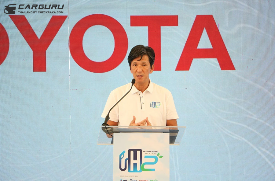 นายโนริอากิ ยามาชิตะ กรรมการผู้จัดการใหญ่ บริษัท โตโยต้า มอเตอร์ ประเทศไทย จำกัด (TMT) กล่าวว่า โตโยต้ามีความท้าทายในการบรรลุเป้าหมายความเป็นกลางทางคาร์บอนในปี 2050 โดยมีกลยุทธหลักว่าด้วยการเตรียมความพร้อมด้านเทคโนโลยีและนวัตกรรมยานยนต์ในหลากหลายแนวทาง หรือ Multi Pathway เพื่อนำเสนอทางเลือกในการเดินทางที่เหมาะสมกับลูกค้าแต่ละกลุ่มที่มีความต้องการที่แตกต่างกัน ด้วยยานยนต์หลากหลายระบบขับเคลื่อน เพื่อให้สอดคล้องกับแนวคิดในการตอบสนองการขับเคลื่อนของทุกคนโดยไม่ทิ้งใครไว้เบื้องหลัง ทั้งนี้ เพื่อให้เทคโนโลยียานยนต์ในรูปแบบต่าง ๆ ได้ถูกนำไปใช้งานได้จริง เราจำเป็นที่จะต้องทำความเข้าใจถึงรูปแบบการใช้งานที่เหมาะสมกับประเทศไทย จึงได้ริเริ่มโครงการ”การจัดตั้งเมืองที่ยั่งยืนโดยปราศจากมลภาวะ Decarbonized Sustainable City” โดยมีรถยนต์รถยนต์ไฟฟ้าเซลล์เชื้อเพลิง โตโยต้า มิไร เป็นส่วนหนึ่งของโครงการทดลองนี้ เนื่องจากเป็นยานยนต์ที่ขับเคลื่อนด้วยไฮโดรเจนอันเป็นพลังงานทางเลือกที่ไม่ส่งผลกระทบต่อสิ่งแวดล้อม ทั้งนี้ ในการบรรลุเป้าหมายความเป็นกลางทางคาร์บอนนั้น โตโยต้ามิอาจบรรลุพันธกิจดังกล่าวได้เพียงลำพัง แต่ยังต้องอาศัยความร่วมมือและการสนับสนุนจากพันธมิตรที่มีเป้าหมายเดียวกัน ดังเช่น โครงการความร่วมมือฯ อันนำมาซึ่งกิจกรรมการเปิดสถานีไฮโดรเจนแห่งแรกในเมืองไทยในวันนี้ ผมหวังว่าความร่วมมือในวันนี้จะเป็นส่วนสำคัญในการเติมเต็มแผนยุทธศาสตร์ Multi Pathway ของเรา ตลอดจนเป็นการร่วมเติมเต็มวิสัยทัศน์ของประเทศในการบรรลุเป้าหมายความเป็นกลางทางคาร์บอนต่อไป