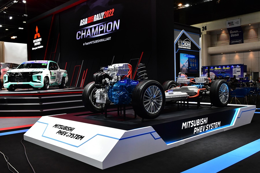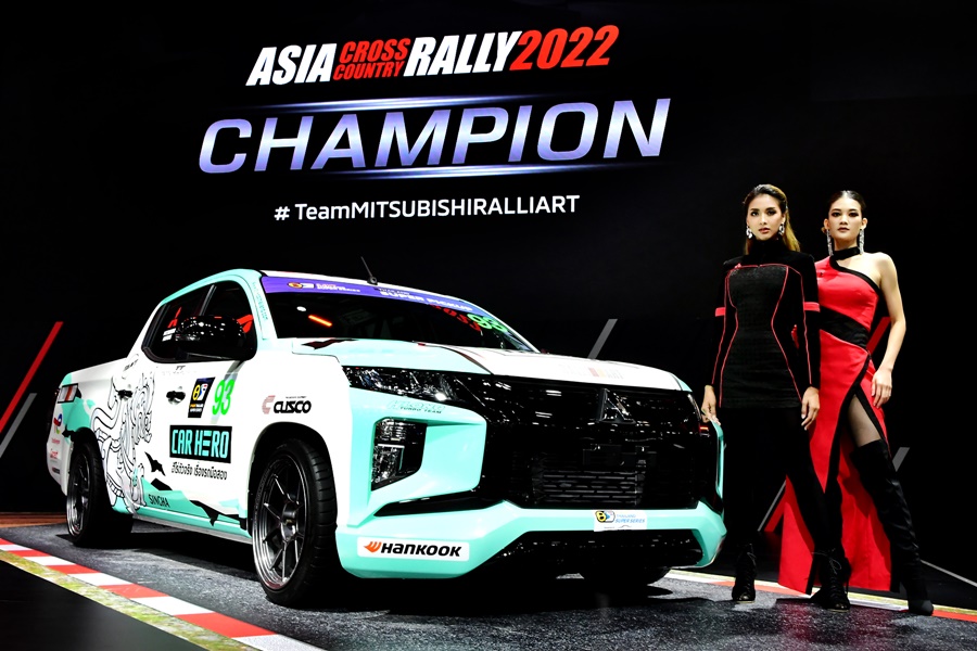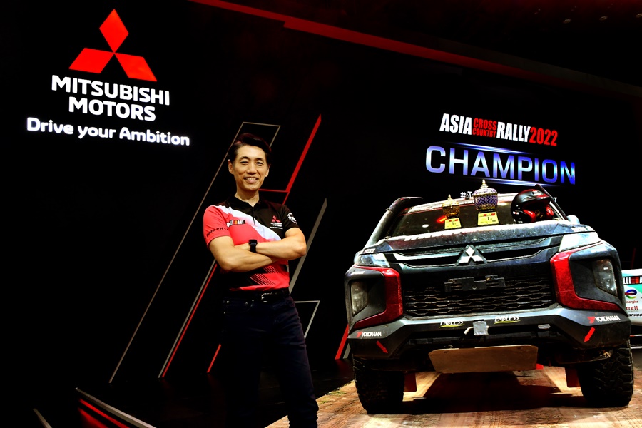 “รถไทรทัน แรลลี่คาร์ คันแชมเปี้ยนที่เพิ่งชนะการแข่งขันเอเชีย ครอสคันทรี แรลลี่ 2022 ที่จัดแสดงในงานนี้ สร้างขึ้นจากรถกระบะ มิตซูบิชิ ไทรทัน ที่ผลิตในไทย รุ่นเดียวกับที่จำหน่ายอยู่ในท้องตลาด โดยยังคงใช้เครื่องยนต์ดีเซลเทอร์โบ 2.4 ลิตร อันทรงพลัง พร้อมด้วยระบบช่วงล่างที่แข็งแกร่งของไทรทัน ที่ให้สมรรถนะการขับขี่ที่ยอดเยี่ยม มีการปรับแต่งน้อยมาก เพียงลดน้ำหนักของตัวรก และเพิ่มอุปกรณ์ด้านความปลอดภัยให้เหมาะสมกับการตะลุยสนามแข่ง จึงเรียกได้ว่า รถมิตซูบิชิ ไทรทันที่เราใช้กันอยู่ทั่วไป ก็มีสมรรถนะแข็งแกร่งทรงพลัง คล้ายคลึงกับ ไทรทัน แรลลี่คาร์ คันแชมป์เปี้ยนนี้” มร. เออิอิชิ กล่าว