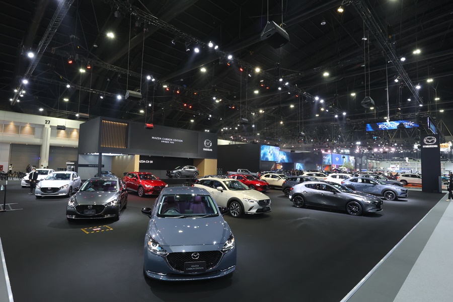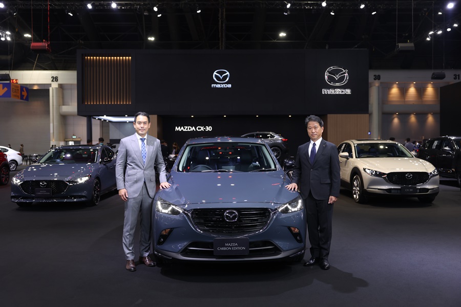 Mazda CX-30 Carbon Edition สีเทา แมชชีน เกรย์ มาจัดแสดงเป็นไฮไลท์ให้แฟนๆ ได้ยลโฉมเป็นครั้งแรก พร้อมรถยนต์มาสด้ารุ่นพิเศษ Carbon Edition ในรุ่น Mazda2, Mazda3 และ Mazda CX-3 ทั้งสีเทา โพลีเมทัล เกรย์ และสีเทา แมชชีน เกรย์ รวมถึงทัพรถยนต์มาสด้าทุกรุ่นภายใต้เทคโนโลยีสกายแอคทีฟและการออกแบบอันสง่างามจาก โคโดะ ดีไซน์ มาจัดแสดงในงานฯ ซึ่งจัดขึ้นระหว่างวันที่ 1-12 ธันวาคม 2565 ณ อาคารชาเลนเจอร์ อิมแพ็ค เมืองทองธานี หรือเพียง 12 วัน เท่านั้น