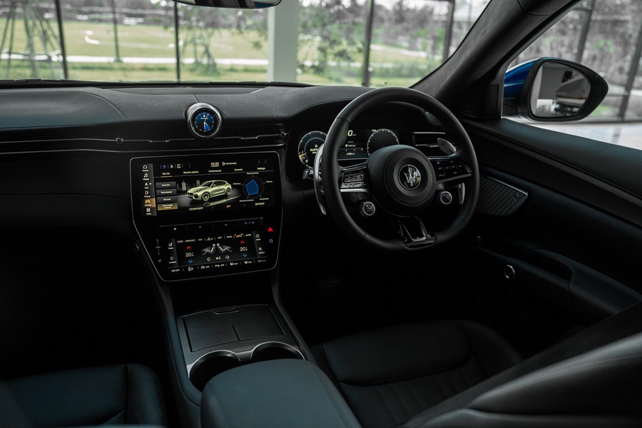 ในรถยนต์เซกเมนต์เดียวกัน ตกแต่งอย่างประณีตทุกรายละเอียด ด้วยหนังแท้เกรดพรีเมียม ไม้แท้ และคาร์บอนไฟเบอร์ อีกทั้งยังเป็นครั้งแรกที่มีการใช้นาฬิกาดิจิทัล แทนนาฬิกาทรงรีแบบดั้งเดิม สามารถแสดงข้อมูลได้หลากหลาย ติดตั้งหน้าจอแสดงข้อมูลอเนกประสงค์แบบทีเอฟที (TFT: Thin-Film Transistor) ขนาด 12.3 นิ้ว ด้านหน้าผู้ขับ พร้อมติดตั้งทัชสกรีนแบบคู่ บริเวณกลางแดชบอร์ด โดยจอบนมีขนาด 12.3 นิ้ว และจอล่างขนาด 8.8 นิ้ว ใหญ่สุดเท่าที่เคยติดตั้งในรถยนต์ มาเซราติ ครบทุกอรรถรสของการขับ ด้วยเครื่องเสียง Sonus Faber จากอิตาลี พร้อมออปชั่นลำโพงแบบ 14 ตำแหน่ง และ 21 ตำแหน่ง