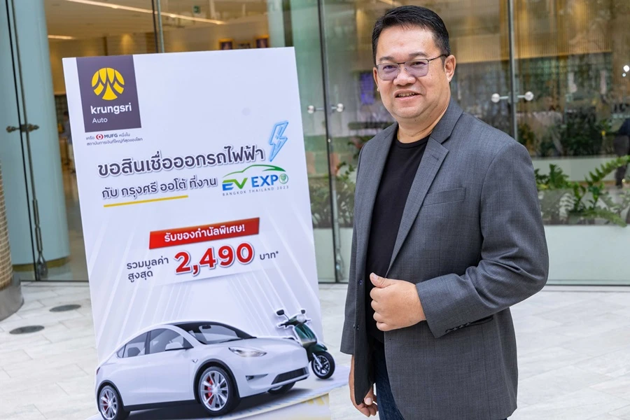 เรารู้สึกยินดีที่ได้เป็นส่วนหนึ่งของงาน Bangkok EV Expo 2023 เป็นครั้งแรก ซึ่งจะเป็นตัวกระตุ้นตลาดยานยนต์ไฟฟ้าในช่วงไตรมาสสุดท้ายของปีนี้ กรุงศรี ออโต้ พร้อมเป็นส่วนหนึ่งในการผลักดันโครงสร้างพื้นฐานด้านอีวีให้ครอบคลุมมากยิ่งขึ้น ด้วยตัวเลือกผลิตภัณฑ์และบริการด้านสินเชื่อที่ตอบโจทย์คนรักเทคโนโลยีและลูกค้าในทุกกลุ่ม”
