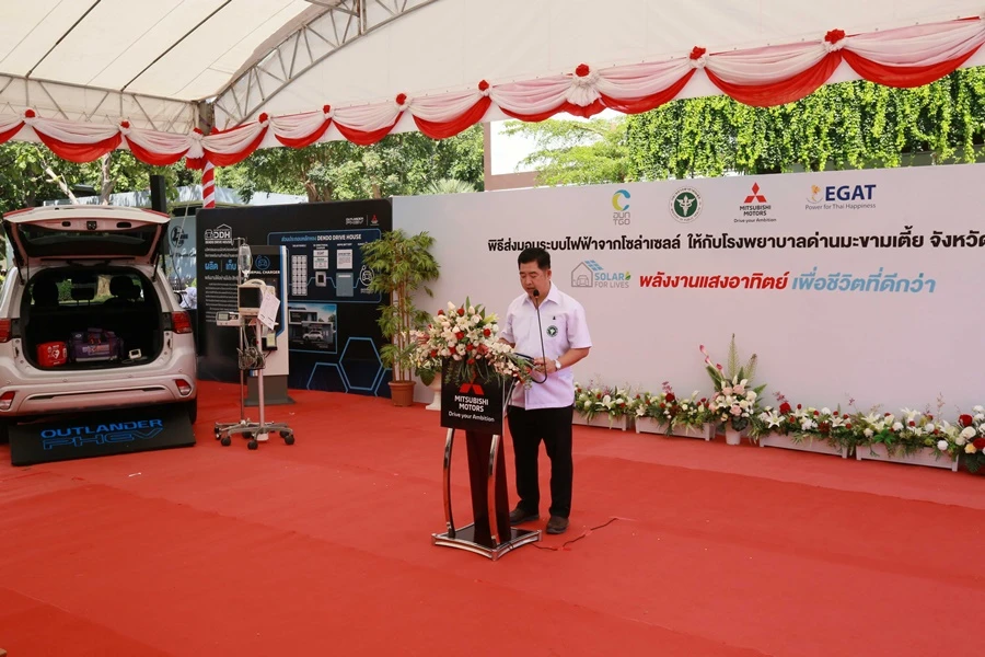 มร. ยาซุโนริ โคะยะนะกิ ผู้ช่วยกรรมการผู้จัดการใหญ่ ฝ่ายอะไหล่และอุปกรณ์ตกแต่ง ฝ่ายบริการหลังการขาย และฝ่ายบริการข้อมูลเทคนิค บริษัท มิตซูบิชิ มอเตอร์ส (ประเทศไทย) จำกัด เปิดเผยว่า “โครงการ Solar For Lives : พลังงานแสงอาทิตย์ เพื่อชีวิตที่ดีกว่า ได้รับการริเริ่มขึ้นในปี 2565 โดยเกิดจากความร่วมมือกับพันธมิตรทั้งภาครัฐและเอกชนของเรา ได้แก่ กระทรวงสาธารณสุข การไฟฟ้าฝ่ายผลิตแห่งประเทศไทย (กฟผ.) และองค์การบริหารจัดการก๊าซเรือนกระจก (องค์การมหาชน) (อบก.) มีเป้าหมายในการมุ่งติดตั้งระบบไฟฟ้าจากโซล่าร์เซลล์ให้แก่โรงพยาบาลชุมชนทั่วประเทศ เพื่อสร้างแหล่งพลังงานที่ยั่งยืนให้กับโรงพยาบาล และยกระดับการให้บริการด้านสุขภาพที่ดีให้กับคนไทย พร้อมส่งเสริมเป้าหมายเชิงยุทธศาสตร์ของรัฐบาลไทยที่มุ่งขับเคลื่อนประเทศไทยสู่การเป็นสังคมคาร์บอนเป็นกลาง ทั้งนี้ เราได้วางแผนใช้เงินลงทุนทั้งสิ้น 60 ล้านบาทเพื่อติดตั้งระบบไฟฟ้าจากโซล่าร์เซลล์ รวมถึงค่าบำรุงรักษาในโรงพยาบาลชุมชน 40 แห่ง ภายในช่วงระยะเวลา 10 ปี ของโครงการ โดยคาดว่าโครงการนี้จะสามารถช่วยลดการปล่อยก๊าซคาร์บอนไดออกไซด์ ของโรงพยาบาลด่านมะขามเตี้ยได้กว่า 30 ตันคาร์บอนต่อปี”