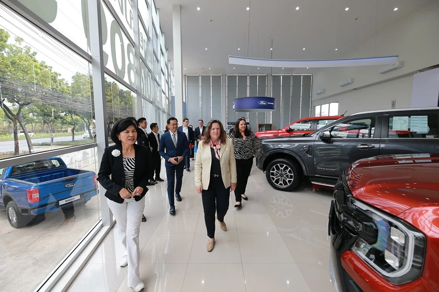 เอเลนา ฟอร์ด ประธานเจ้าหน้าที่ฝ่ายบริหารความสัมพันธ์ผู้จำหน่าย ฟอร์ด มอเตอร์ คัมปะนี เยี่ยมชมการทำงานของผู้จำหน่ายฟอร์ด วีพี เพชรเกษม