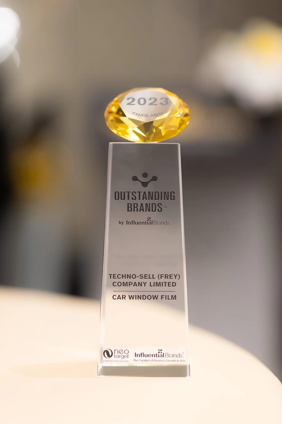 นางสาวจันทร์นภา สายสมร ประธานเจ้าหน้าที่บริหาร บจก.เทคโนเซล (เฟรย์) ผู้นำเข้าและจัดจำหน่ายฟิล์มกรองแสงติดรถยนต์และอาคาร ลามิน่า รับรางวัล Thailand’s Outstanding Brands 2023 หรือ รางวัลแบรนด์ที่ประสบความสำเร็จในการดำเนินธุรกิจสูงสุดต่อเนื่อง ประจำปี 2566 จากเวทีระดับเอเชีย