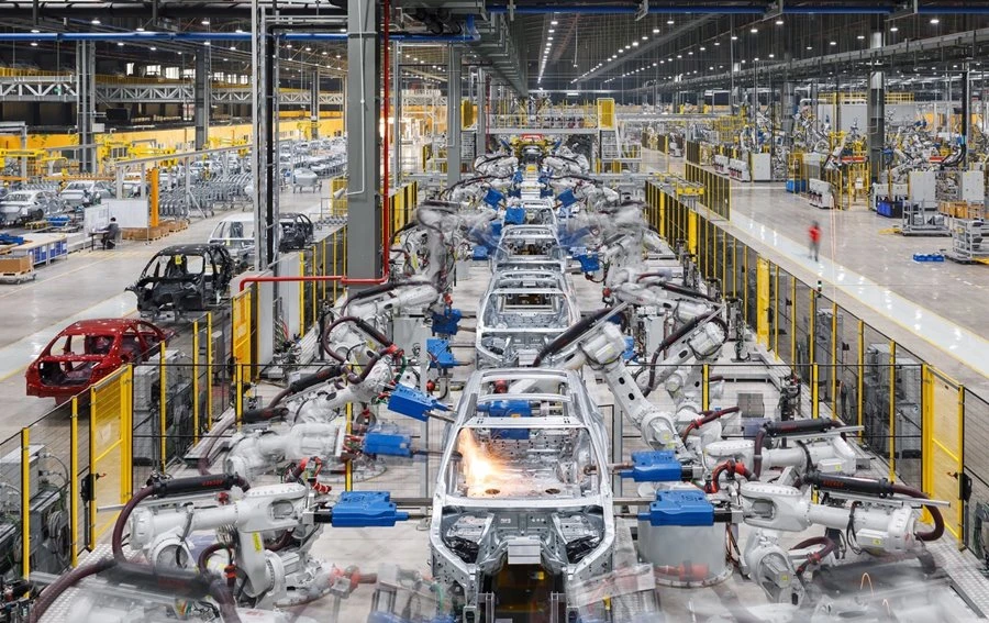 ด้านนอกโรงงาน โลกที่ห่างไกลจากเสียงเครื่องจักรหุ่นยนต์ในสายการผลิตรถยนต์ กลุ่มชาวประมงสวมหมวกทรงกรวยแบบดั้งเดิมกำลังเดินอยู่บนหาดโคลน ขว้างอวนจับปลานิล และปลาเฉา แต่เมื่อก้าวเข้าไปในโรงงานวินฟาสต์ใกล้กับเมืองท่าไฮฟอง ภาพที่เห็นกลับแตกต่างไปอย่างสิ้นเชิง ด้วยระบบอัตโนมัติที่กำลังทำงานในขณะที่รถยนต์แต่ละคันเคลื่อนตัวไปตามสายพานลำเลียงความยาว 2.5 ไมล์ กองทัพหุ่นยนต์ที่มีแขนรวมกัน 1,250 แขนที่ทำงานประสานกันและเคลื่อนไหวด้วยความแม่นยำ นำส่วนประกอบ 3,000 ชิ้นใส่ให้กับยานพาหนะแต่ละคันอย่างพิถีพิถัน พร้อมประกายไฟและหมุดที่ยึดชิ้นส่วนทุกชิ้นให้แน่นหนา