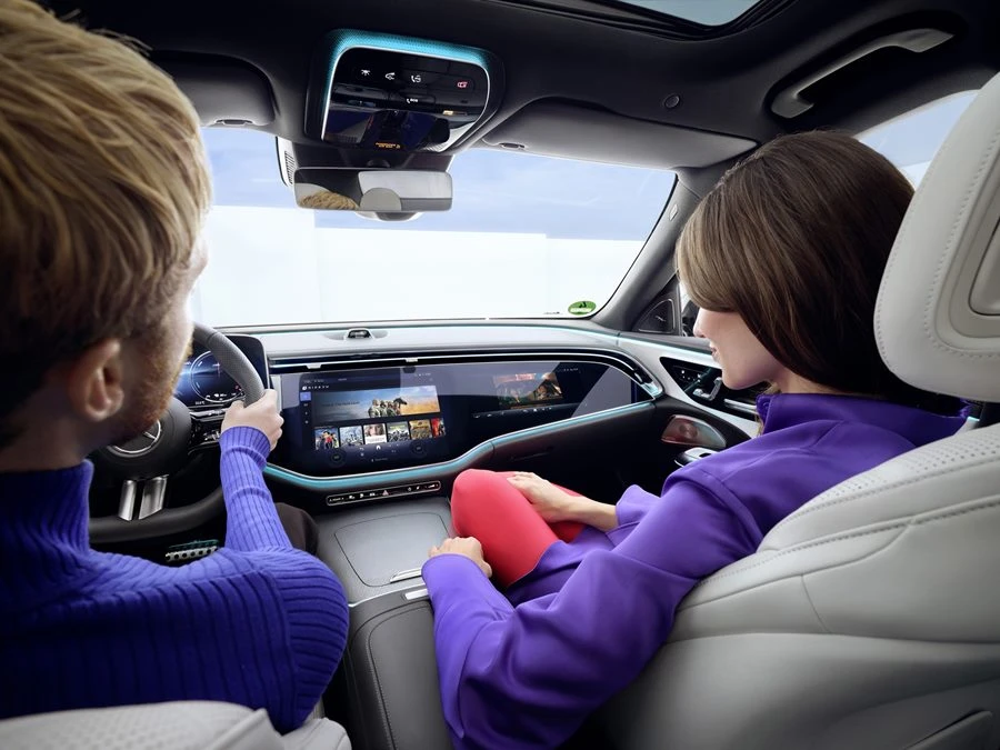 MBUX (Mercedes-Benz User Experience) ของเมอร์เซเดส-เบนซ์ ซึ่งสามารถรับชมภาพยนตร์และคอนเทนต์ ได้ทั้งแบบส่วนตัวหรือแชร์หน้าจอได้สูงสุดถึง 6 หน้าจอ รวมถึงหน้าจอในรถยนต์และอุปกรณ์อื่น ๆ จากบัญชีเดียวกัน โดยเริ่มต้นด้วยการสมัครแพ็กเกจเสริม MBUX Entertainment Package Plus และสร้างบัญชี RIDEVU ผ่านแอปพลิเคชันในรถยนต์ เพื่อเปิดใช้งานฟีเจอร์การรับชมภาพยนตร์บนแอปพลิเคชัน กับทางเลือกในการเช่าหรือซื้อภาพยนตร์ที่มีให้เลือกสรรมากมาย ทั้งภาพยนตร์ระดับตำนานและภาพยนตร์ใหม่ล่าสุดที่เพิ่งเข้าฉาย ซึ่งจะมีการอัปเดตลิสต์ภาพยนตร์อย่างต่อเนื่อง โดยแอปพลิเคชัน RIDEVU พร้อมให้บริการแล้วในประเทศเยอรมนี สหราชอาณาจักร และไอร์แลนด์ สำหรับเจ้าของรถยนต์ที่ติดตั้งระบบ MBUX เจเนเรชันที่ 2 รวมถึง MBUX เจเนเรชันล่าสุด ที่กำลังจะเปิดให้บริการเร็ว ๆ นี้