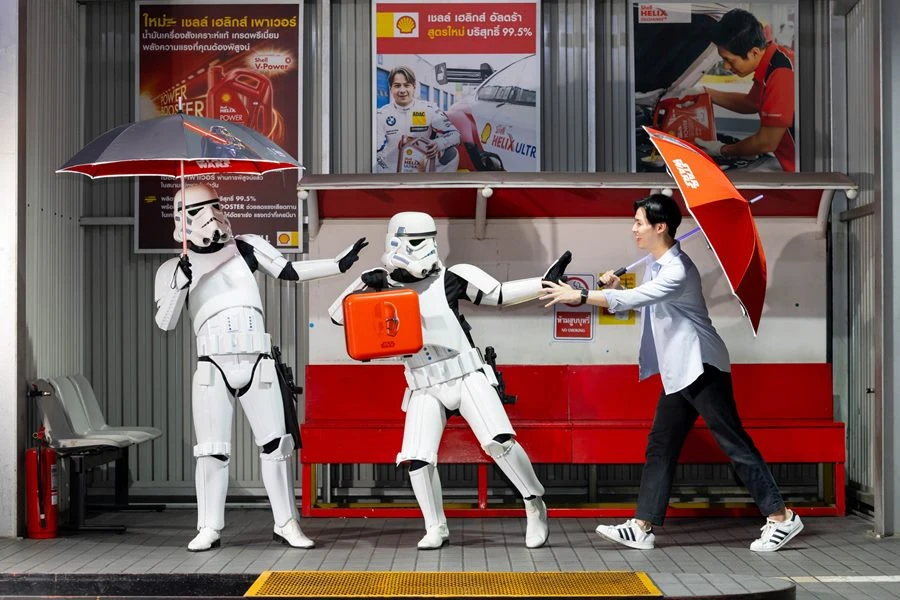 คอลเลกชันสุดพิเศษจากเชลล์ที่จะทำให้คุณรู้สึกเหมือนอยู่ในจักรวาลสตาร์วอร์ส ประกอบด้วยร่มไลต์เซเบอร์และกระเป๋า