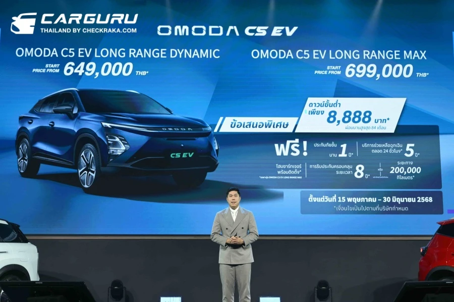 นอกจากนี้ยังได้มีการปรับราคา OMODA C5 EV Long Range รุ่นใหม่ โดยยังคงไว้ซึ่งสมรรถนะและฟังก์ชันเดิมอย่างครบถ้วน ได้แก่ OMODA C5 EV Long Range Dynamic ราคา 649,000 บาท และราคา OMODA C5 EV Long Range Max ราคา 699,000 บาท และยังมีโปรโมชันดาวน์เริ่มต้น 8,888 บาท ผ่อนนานสูงสุด 84 เดือน*