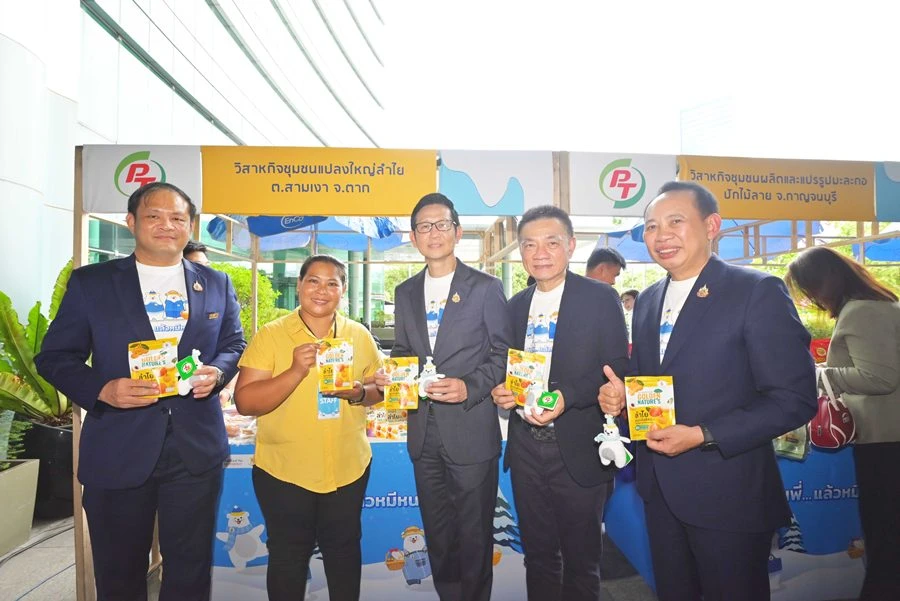 กระทรวงพลังงาน เดินหน้าหนุนเศรษฐกิจฐานรากเต็มกำลัง จับมือ 5 บริษัทผู้ค้าน้ำมันชั้นนำของไทย ได้แก่ PTG, PTTOR, เชลล์, คาลเท็กซ์ และซัสโก้ เปิดตัว "โครงการส่งเสริมการจำหน่ายผลิตภัณฑ์ชุมชน ลดใช้พลังงาน" พร้อมแคมเปญสร้างสรรค์ "กินพี่...แล้วหมีหนาว" เพื่อผลักดันสินค้าชุมชนคุณภาพที่ผลิตด้วยพลังงานสะอาดและเป็นมิตรต่อสิ่งแวดล้อม สู่เครือข่ายสถานีบริการน้ำมันทั่วประเทศ โดยตั้งเป้าสร้างรายได้ให้ชุมชน ควบคู่กับการลดการใช้พลังงาน และมุ่งสู่การสร้างสังคมคาร์บอนต่ำอย่างยั่งยืน