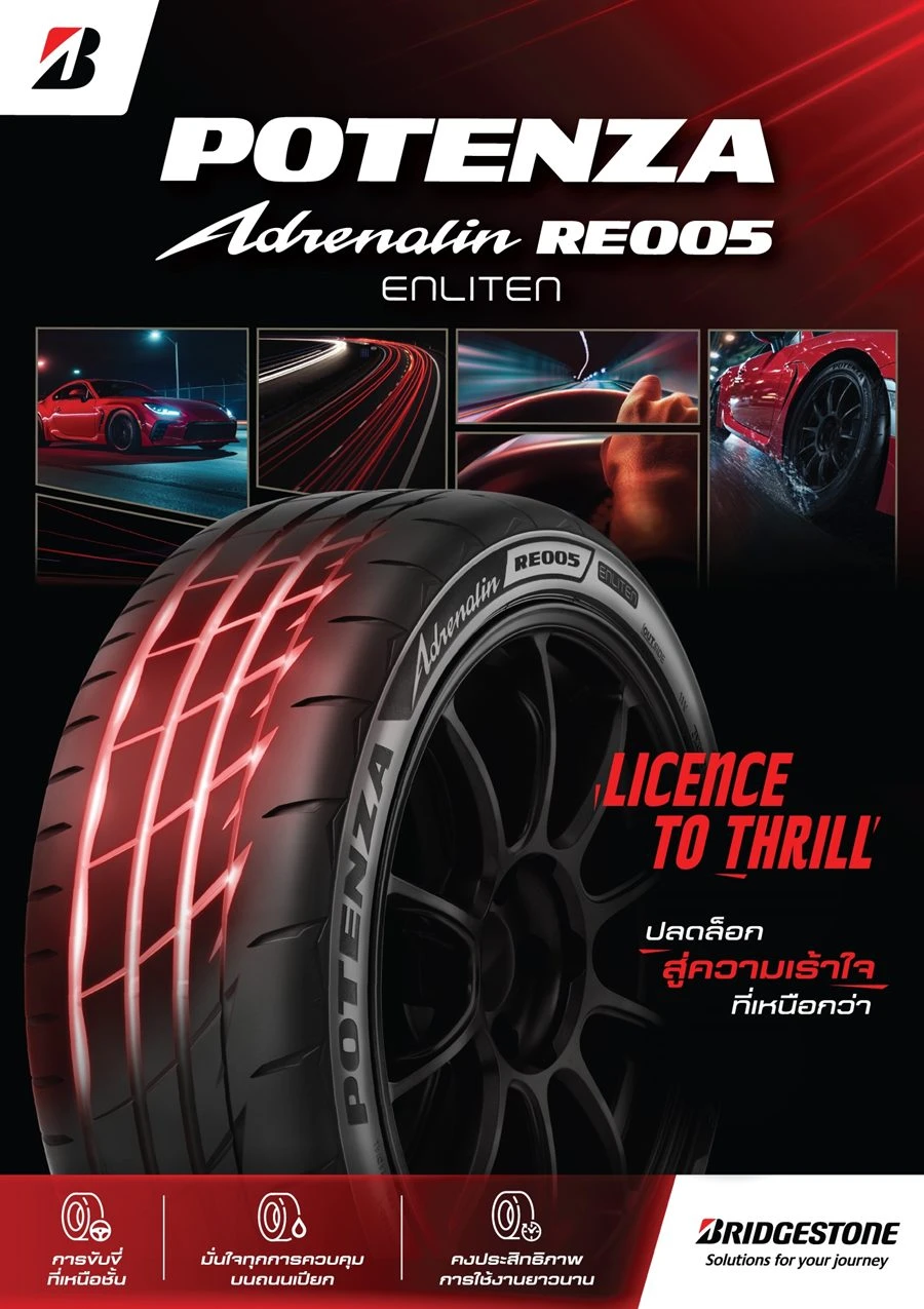 บริษัท บริดจสโตนเซลส์ (ประเทศไทย) จำกัด เปิดตัวผลิตภัณฑ์ยางรถยนต์สปอร์ตพรีเมียมรุ่นใหม่ล่าสุด BRIDGESTONE POTENZA Adrenalin RE005 ภายใต้คอนเซปต์ ปลดล็อกสู่ความเร้าใจที่เหนือกว่า พร้อมให้คุณปลดปล่อยพลังความสปอร์ตเต็มพิกัด ควบคุมแม่นยำ และมั่นใจทุกการควบคุม