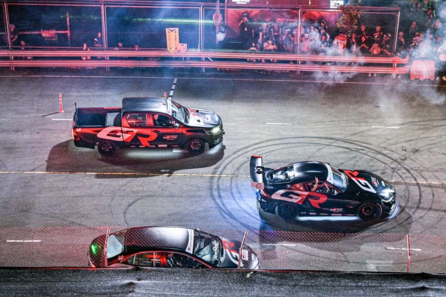 ชมไนท์โชว์สุดตระการตากับ GR PERFORMANCE SHOW การแสดงของรถตระกูล GR และ GR TRIPLE DRIFT SHOW การโชว์ดริฟต์โดยนักขับมืออาชีพ เป้ และ ปอนด์ Drive to Drift ร่วมด้วย พีท ทองเจือ