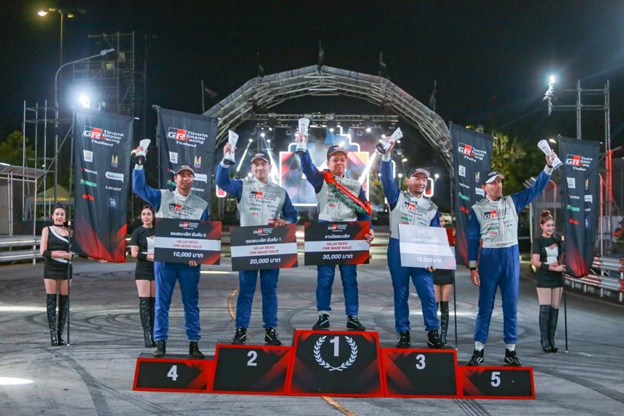 สุดท้ายนี้ ขอขอบคุณท่านผู้สนับสนุนรายการอย่างเป็นทางการ โยโกฮามา / พีทีที สเตชั่น / โมเดลลิสต้า / เลนโซ่ / อาร์โต / สิงห์ คอร์ปอเรชั่น ผู้ที่เกี่ยวข้องทุกภาคส่วน และแฟนมอเตอร์สปอร์ต ที่ร่วมกิจกรรมในวันนี้ ขอให้ทุกท่านเพลิดเพลิน และสัมผัสจิตวิญญาณของ โตโยต้า กาซู เรซซิ่ง ไทยแลนด์”