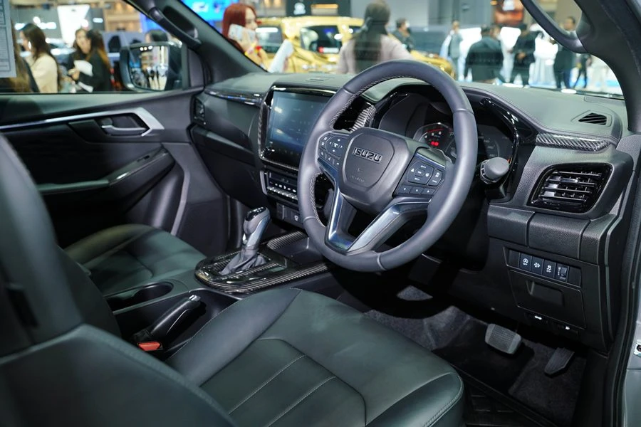 - MU-X THE NEXT PEAK รุ่น RS 4WD 3.0 Ddi MAXFORCE เกียร์อัตโนมัติ สีเทา ไอเกอร์ โอเพค (Eiger Gray Opaque) เครื่องยนต์ 3.0 Ddi MAXFORCE 190 แรงม้า แรงบิด 450 นิวตัน-เมตร เพิ่มความมั่นใจขณะขับขี่ด้วยช่วงล่างใหม่! โช้กอัพแบบ STIFF FLEX ลดการสั่นสะเทือน และการโคลงของรถขณะขับขี่ นุ่มนวล มั่นใจทุกครั้งที่เข้าโค้ง มั่นใจในทุกสภาพถนนด้วยระบบ Terrain Command เปลี่ยนระบบขับเคลื่อนได้ง่าย พร้อมระบบ Rough Terrain Mode ที่ทำให้สามารถขับผ่านอุปสรรคต่างๆ ได้อย่างง่ายดาย พร้อมระบบช่วยเหลือผู้ขับขี่ ADAS และกล้องหน้าคู่ 3D Imaging Stereo Camera ที่ให้ทุกการเดินทางอุ่นใจยิ่งกว่า ภายนอกโดดเด่น สง่างาม ด้วยกระจังหน้า BLACK DIAMOND GRILLE พร้อมสัญลักษณ์ RS ไฟหน้าและไฟท้าย DYNAMIC BLADE และเส้นดีไซน์ EMBRACE LINE สะท้อนความสปอร์ตล้ำยุค เสริมด้วยกันชนหน้าแบบ FIGHTER JET พร้อม AIR CURTAIN เพิ่มสมรรถนะการขับขี่ สปอร์ตยิ่งขึ้นด้วย FENDER GARNISH สีดำ, SIDE GARNISH สัญลักษณ์ RS และล้ออัลลอย RS DESIGN ขนาด 20 นิ้ว ภายในห้องโดยสารนั่งสบายรองรับสรีระตลอดการขับขี่ด้วยเบาะ COOLMAX ลดการสะสมความร้อน พร้อมตกแต่งสัญลักษณ์ RS สี LIME GREEN เพิ่มเอกลักษณ์เฉพาะตัว ครบครันด้วยเทคโนโลยีอำนวยความสะดวก หน้าจอสัมผัส 9 นิ้ว รองรับ Wireless Android Auto / Apple CarPlay* Bluetooth, WiFi Mirroring, USB-C ลำโพง 8 ตำแหน่ง ขับสะดวกสบายด้วยพวงมาลัยไฟฟ้า พร้อมกล้องมองรอบคัน 360 องศา และกล้องถอยหลังพร้อมเส้นกะระยะ Dynamic Guideline