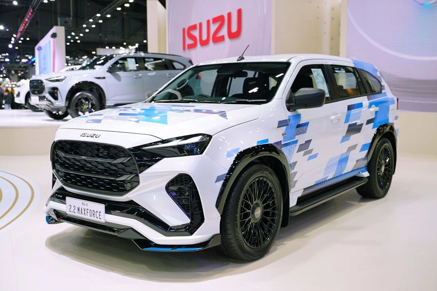 - MU-X THE NEXT PEAK รุ่น Active 2.2 Ddi MAXFORCE สีขาวมุกโดโลไมท์ (Dolomite White Pearl) ตกแต่งพิเศษด้วยคอนเซ็ปต์ JAPANESE SPORT-SUV สัญลักษณ์แห่งคุณภาพแบบญี่ปุ่น เน้นคุณภาพและความเชื่อมั่นที่วางใจได้ เสริมความโดดเด่นด้วยชุดแต่งบอดี้พาร์ทรอบคันจาก AKC ใส่ชุดโหลดช่วงล่างจาก PROFENDER เสริมลุคสปอร์ตด้วยล้ออัลลอย LENSO รุ่น JAGER APOLLO พร้อมยาง YOKOHAMA ADVAN SPORT ขนาด 265/50R20 ขนาด 20 นิ้ว หยุดรถได้อย่างมั่นใจด้วยระบบเบรกหน้า CALIPER แบบ 6 POT และเบรกหลัง CALIPER แบบ 4 POT พร้อมจานเบรกขนาด 355 มิลลิเมตร จาก Run Stop