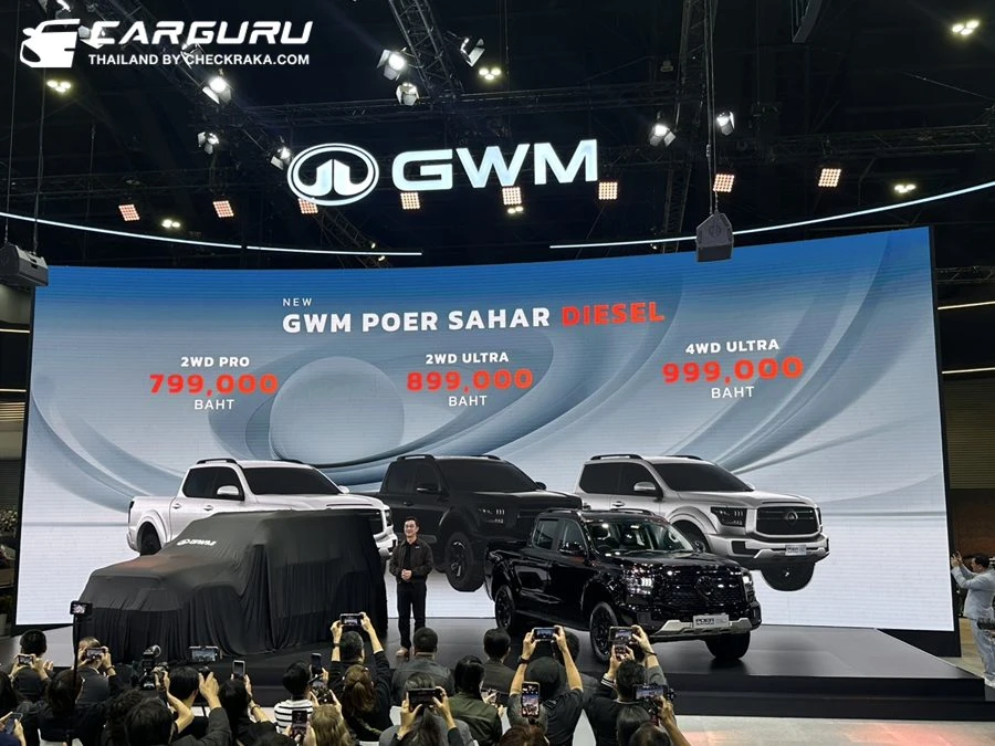 NEW GWM POER SAHAR DIESEL ที่มาพร้อม 3 รุ่นย่อย ในราคาพิเศษสำหรับช่วงเปิดตัวระหว่าง 799 - 999 แสนบาท เพียง 300 คันแรกที่ทำการส่งมอบเท่านั้น ยิ่งไปกว่านั้น ยังมีเซอร์ไพรส์กับการเปิดตัวรถออฟโรดระดับไอคอนอย่าง