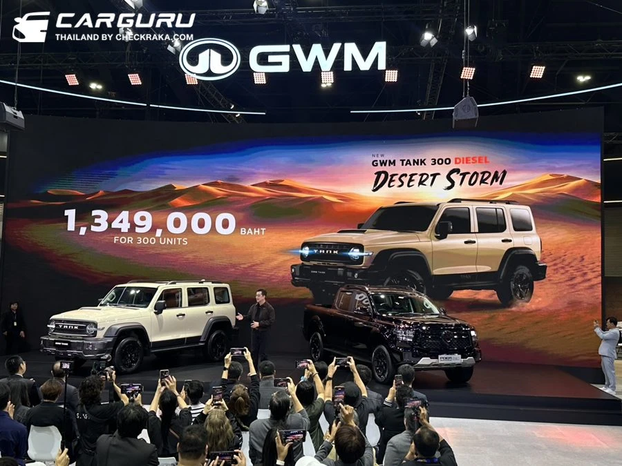 NEW GWM TANK 300 DIESEL Desert Storm Limited Edition ที่ให้สายลุยได้รีบสะสมและเป็นเจ้าของในจำนวนจำกัดเพียง 300 คันเท่านั้น ผู้ที่สนใจสามารถสัมผัสยนตรกรรมรุ่นใหม่ พร้อมทัพรถพลังงานใหม่ทุกรุ่นของ GWM ได้อย่างใกล้ชิด ณ บูธ GWM A05 อาคารชาเลนเจอร์ ฮอลล์ 1-3 อิมแพ็ค เมืองทองธานี ระหว่างวันที่ 29 พฤศจิกายน 2568 ถึง 10 ธันวาคม 2568