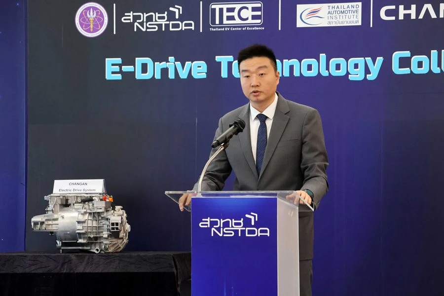 นายกวน ซิน รองประธาน ฉางอาน ออโต้ เซ้าท์อีสเอเชีย จำกัด กล่าวว่า “ชุดควบคุมมอเตอร์เป็นชิ้นส่วนสำคัญซึ่งทำหน้าที่เปรียบเสมือน ‘สมอง’ ในการควบคุมการทำงานของมอเตอร์ไฟฟ้า ความร่วมมือในโอกาสนี้ จึงไม่เพียงเป็นการต่อยอดแนวทางการส่งต่อองค์ความรู้ที่มีคุณค่าด้านเทคโนโลยียานยนต์ไฟฟ้าขั้นสูงระหว่าง สวทช. กับภาคอุตสาหกรรมยานยนต์ไฟฟ้า แต่ยังสนับสนุนการพัฒนาบุคลากร งานวิจัย และการเรียนการสอนด้านยานยนต์ไฟฟ้าในประเทศไทยอย่างเป็นรูปธรรมซึ่งถือเป็นส่วนสำคัญในการสร้างความพร้อมของระบบนิเวศยานยนต์ไฟฟ้าเพื่อรองรับนโยบาย EV30@30 ของภาครัฐ รวมถึงตอกย้ำความมุ่งมั่นของเราต่อประเทศไทยทั้งในด้านการดำเนินธุรกิจ การผลิต การพัฒนาเทคโนโลยีผ่านความร่วมมือกับทุกภาคส่วนเพื่อยกระดับศักยภาพของอุตสาหกรรมยานยนต์พลังงานใหม่ พร้อมทั้งสร้างรากฐานที่แข็งแกร่งให้สังคมไทยสามารถก้าวสู่อนาคตที่เป็นมิตรต่อสิ่งแวดล้อมได้อย่างแท้จริง”